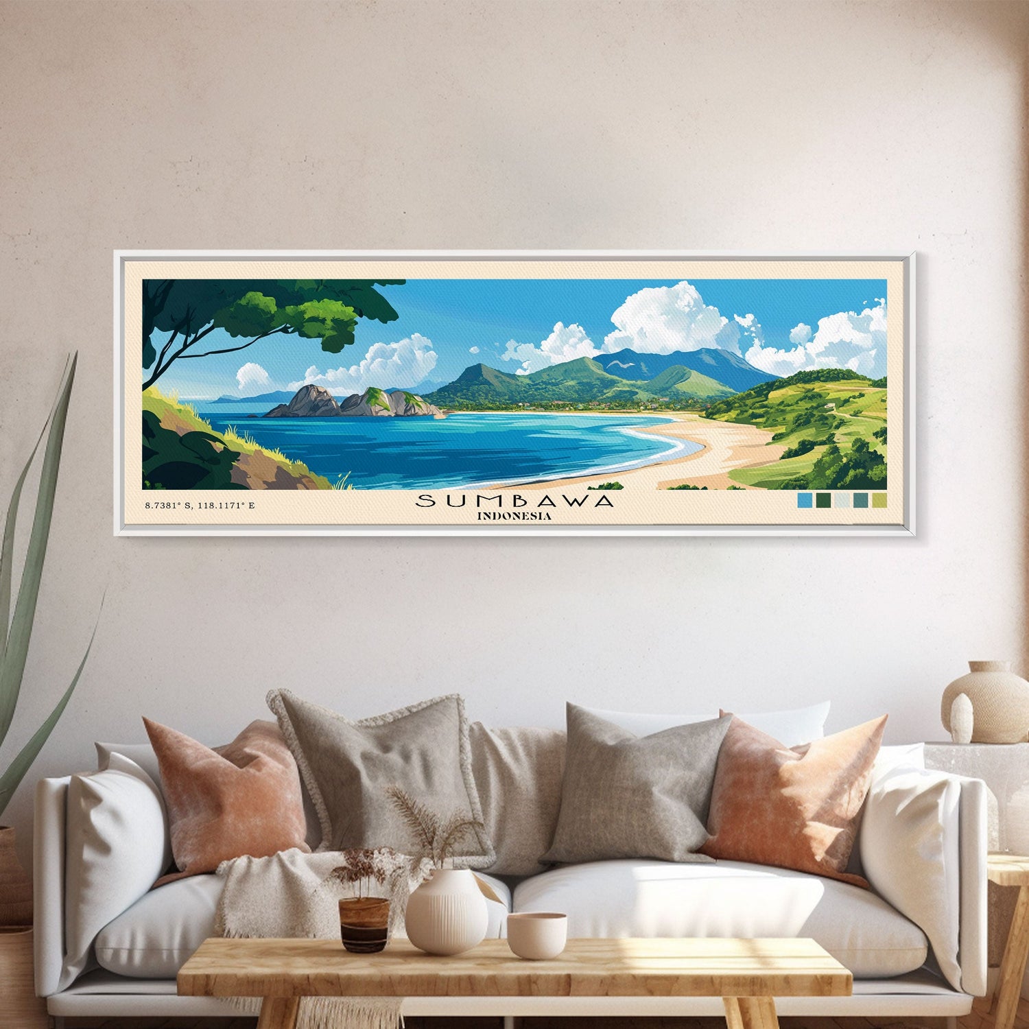 Sumbawa, Indonesia Panoramic Beach Print, Vacation Gift, Indonesia Wall Art, Beach Painting, Beach Decor, Beach Painting