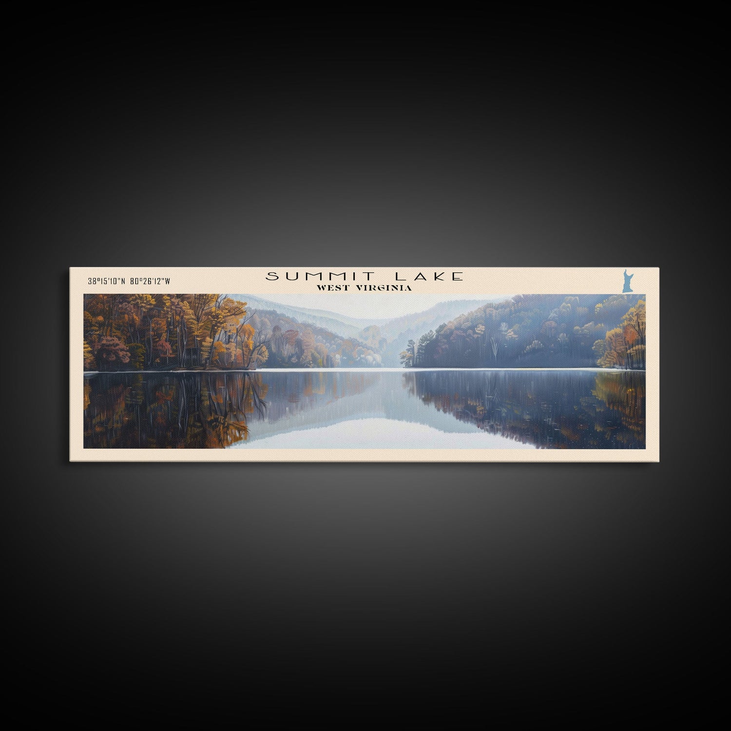 Summit Lake West Virginia Panoramic Wall Art, Framed Canvas Print, Lake House Decor, Travel Poster, Tranquil Landscape, Bedroom Decor