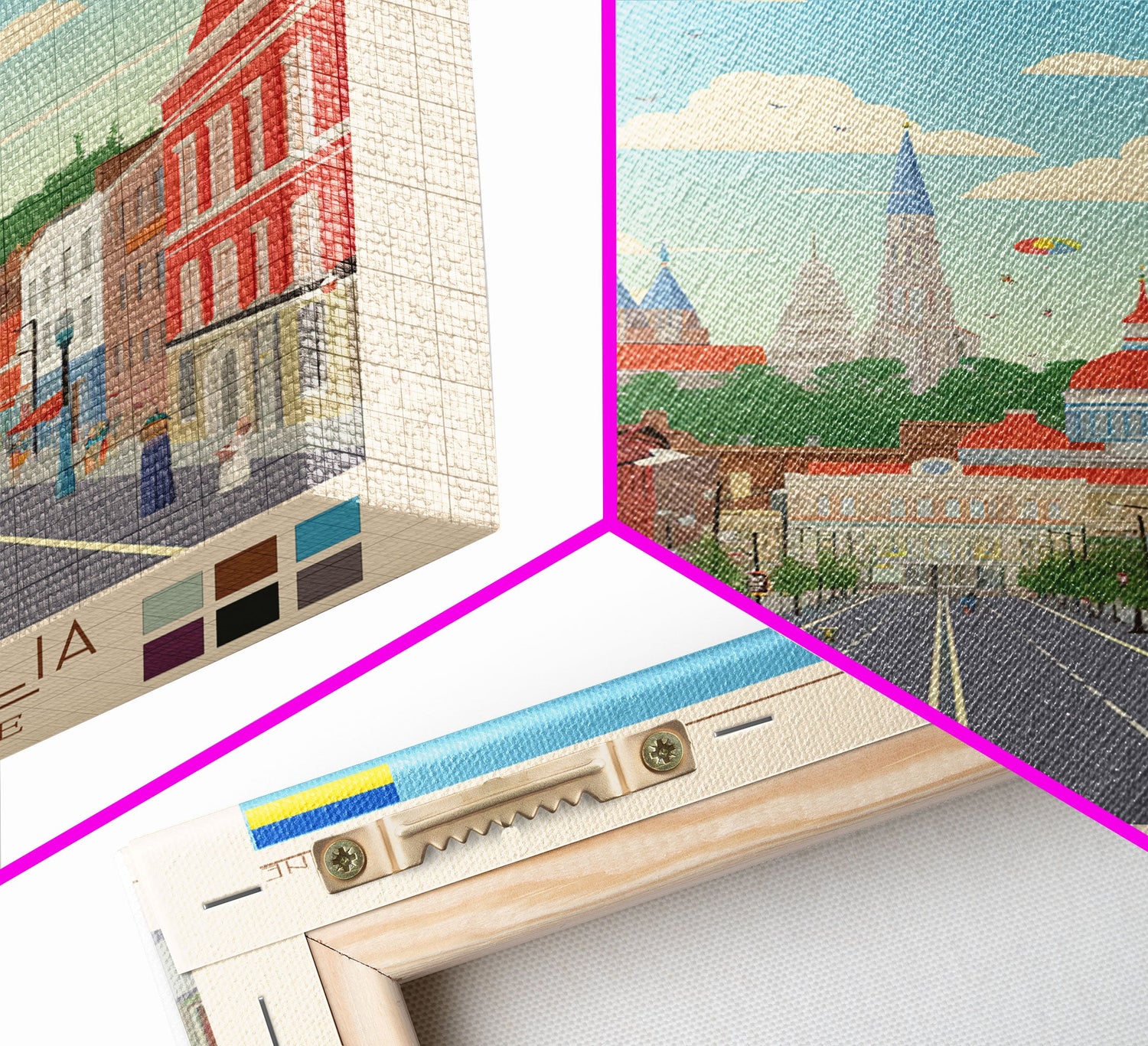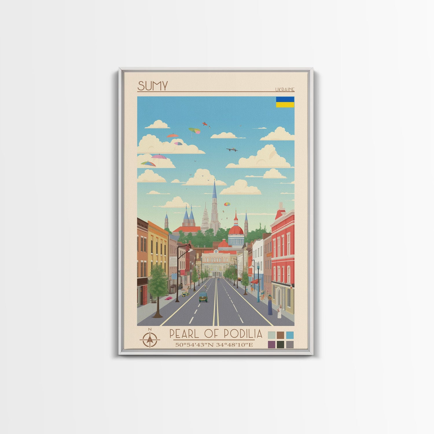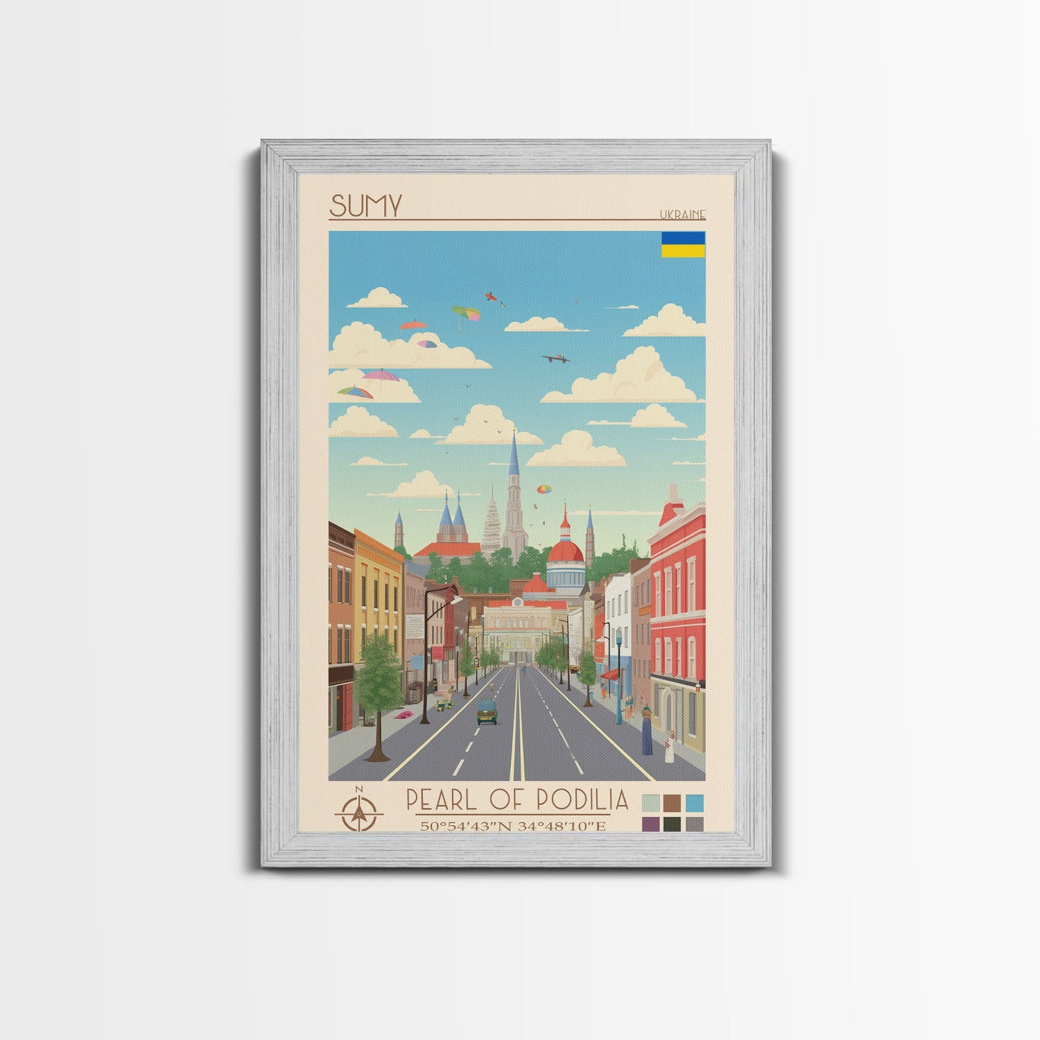 Sumy Ukraine Travel Poster Framed Canvas Print, Midcentury Modern Art, Pop Art Wall Decor, Living Room Art, Scenic Wall Art