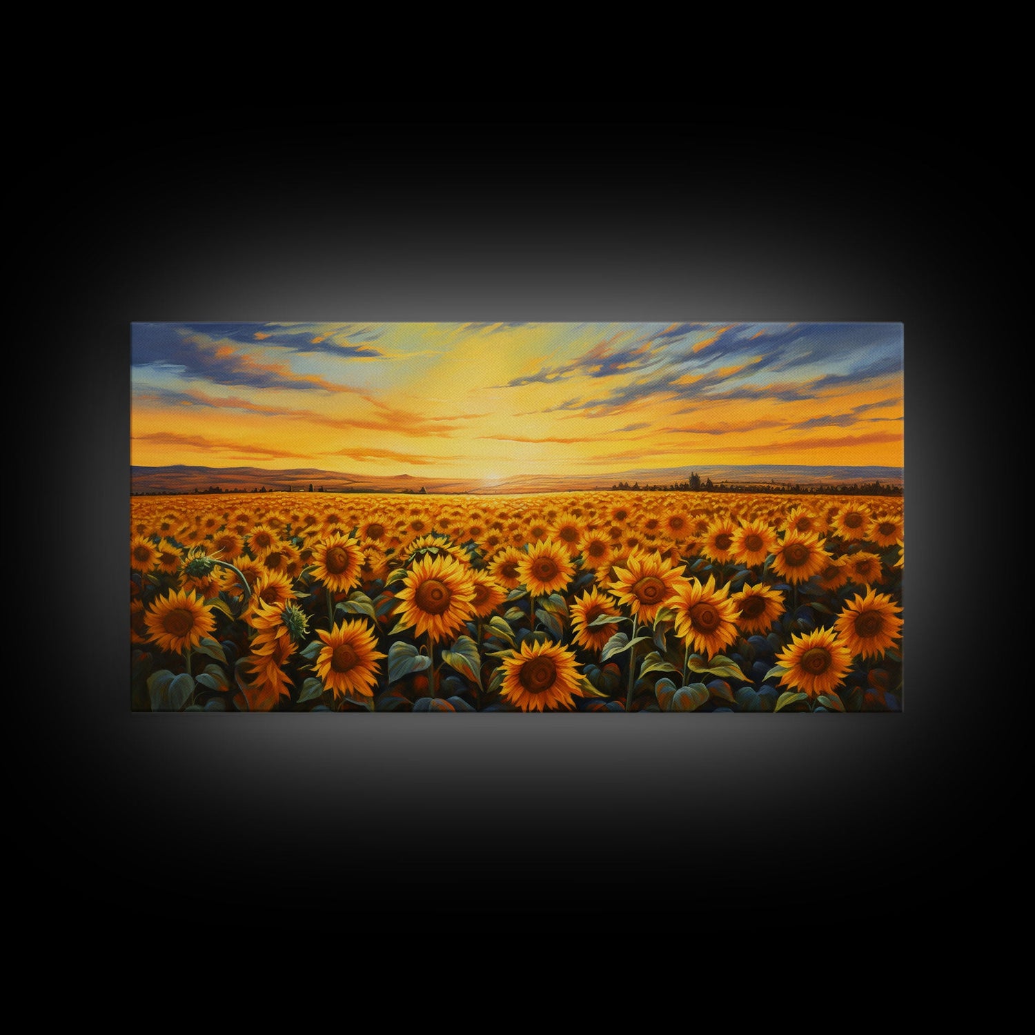 Sunflowers Wall Art, Sunset Wall Art, Yellow Flower Art, Field Of Flowers, Panoramic Art, Wall Art, Canvas Art, Landscape Art, Country Decor