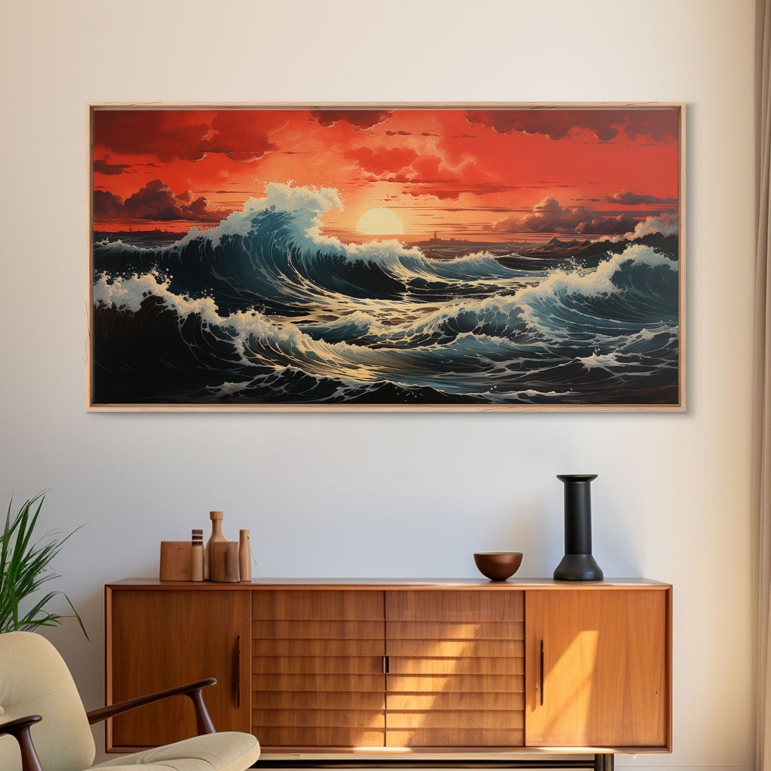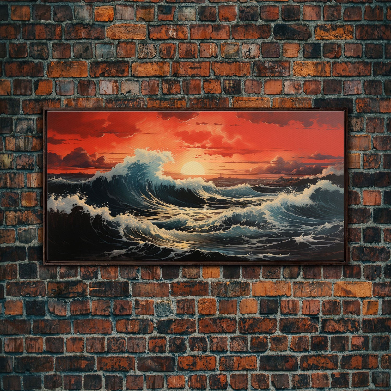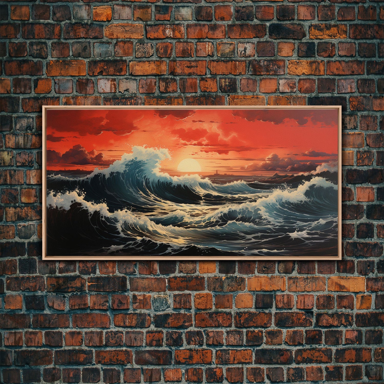 Sunset Wall Art, Ocean Art Print, Seascape Wall Art, Panoramic Art, Wall Art, Canvas Art, Landscape Art, Wedding Gift, Apartment Wall Art
