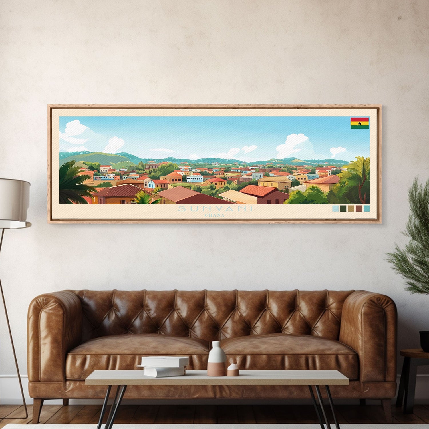 Sunyani, Ghana Panoramic Travel Poster Canvas Print, Sunyani, Ghana Painting, Ghana Art, Sunyani Panoramic Travel Art, Travel Painting