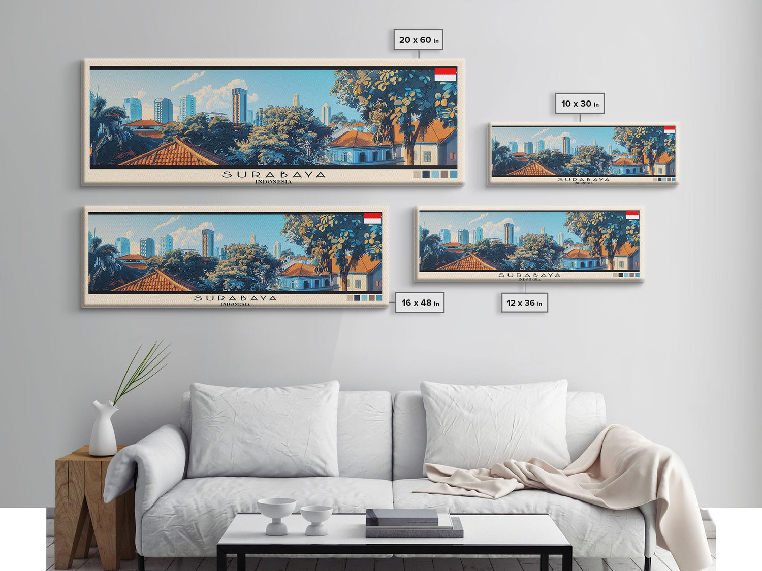 Surabaya, Indonesia Panoramic Canvas Print, Surabaya, Indonesia Painting, Indonesia Art, Surabaya Travel Poster, Travel Art, Vacation Gift