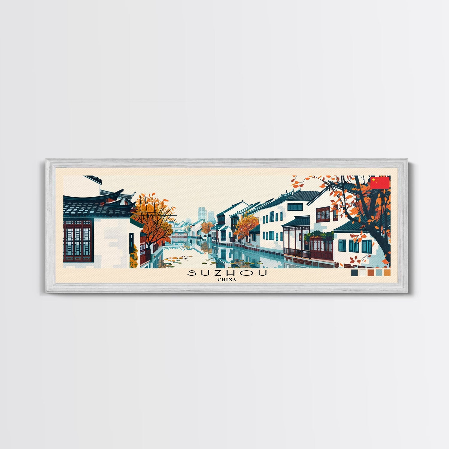 Suzhou, China Panoramic Canvas Print, Suzhou, China Painting, China Art, Suzhou Travel Poster, Travel Art, Living Room Painting