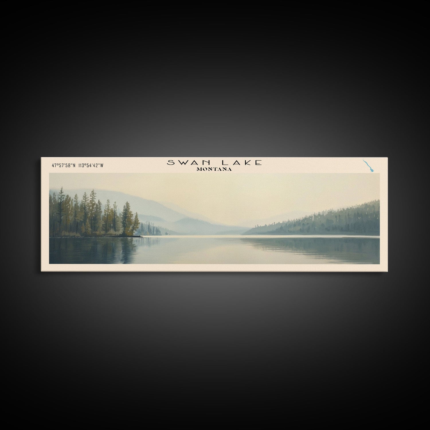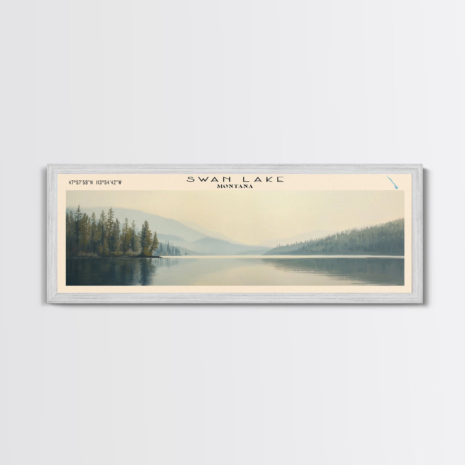 Swan Lake Montana Panoramic Wall Art, Framed Canvas Print, Lake House Decor, Travel Poster, Beautiful Landscape, Bedroom Decor