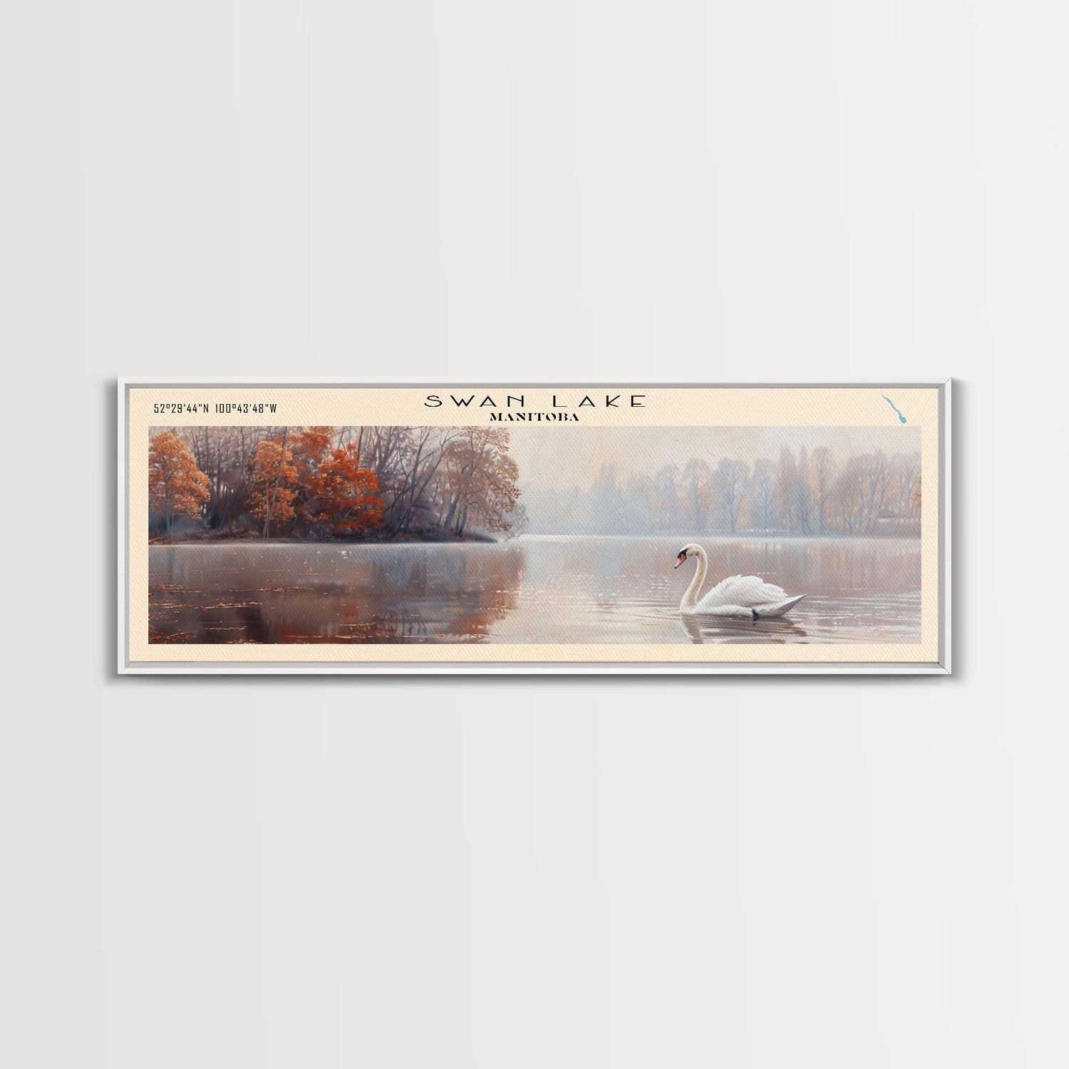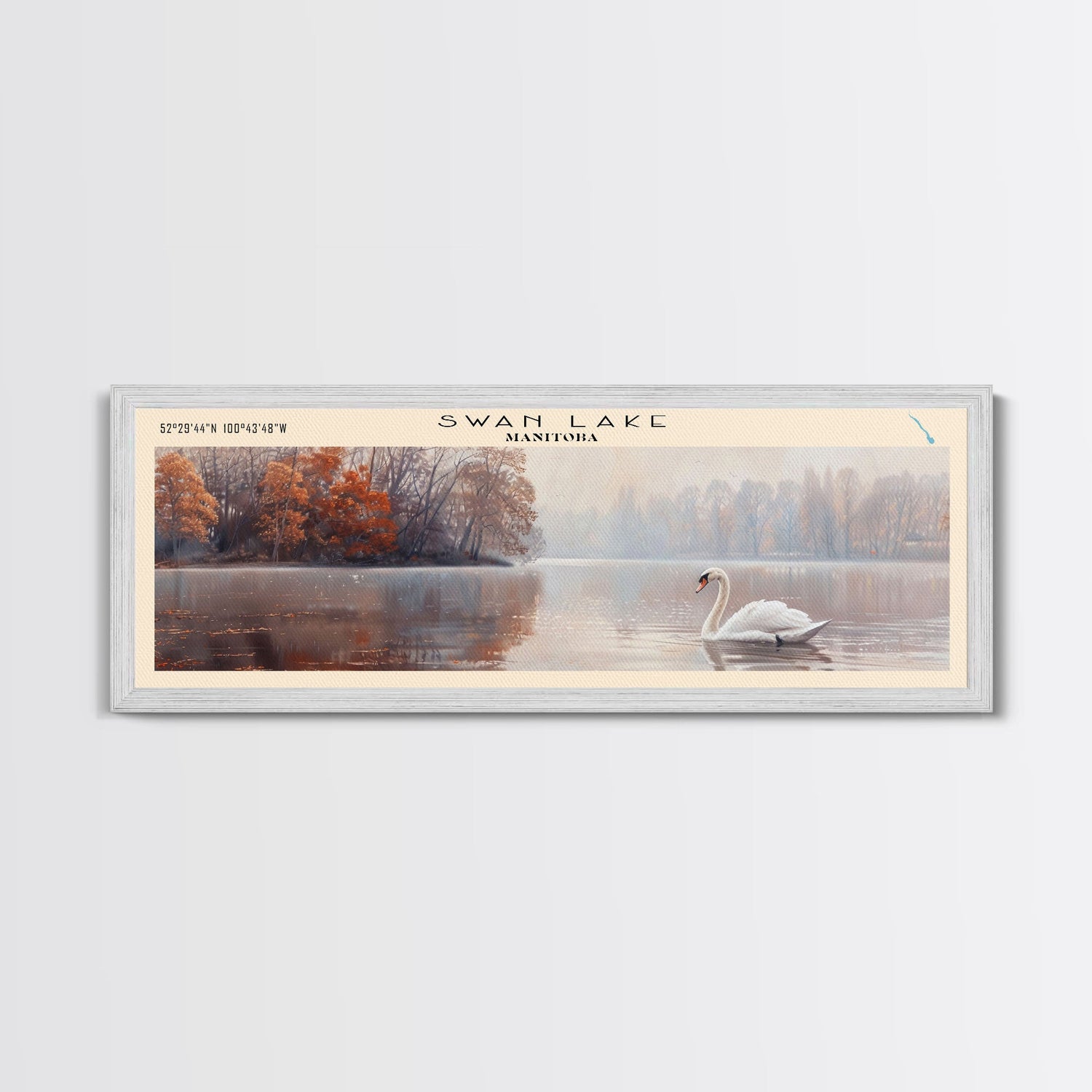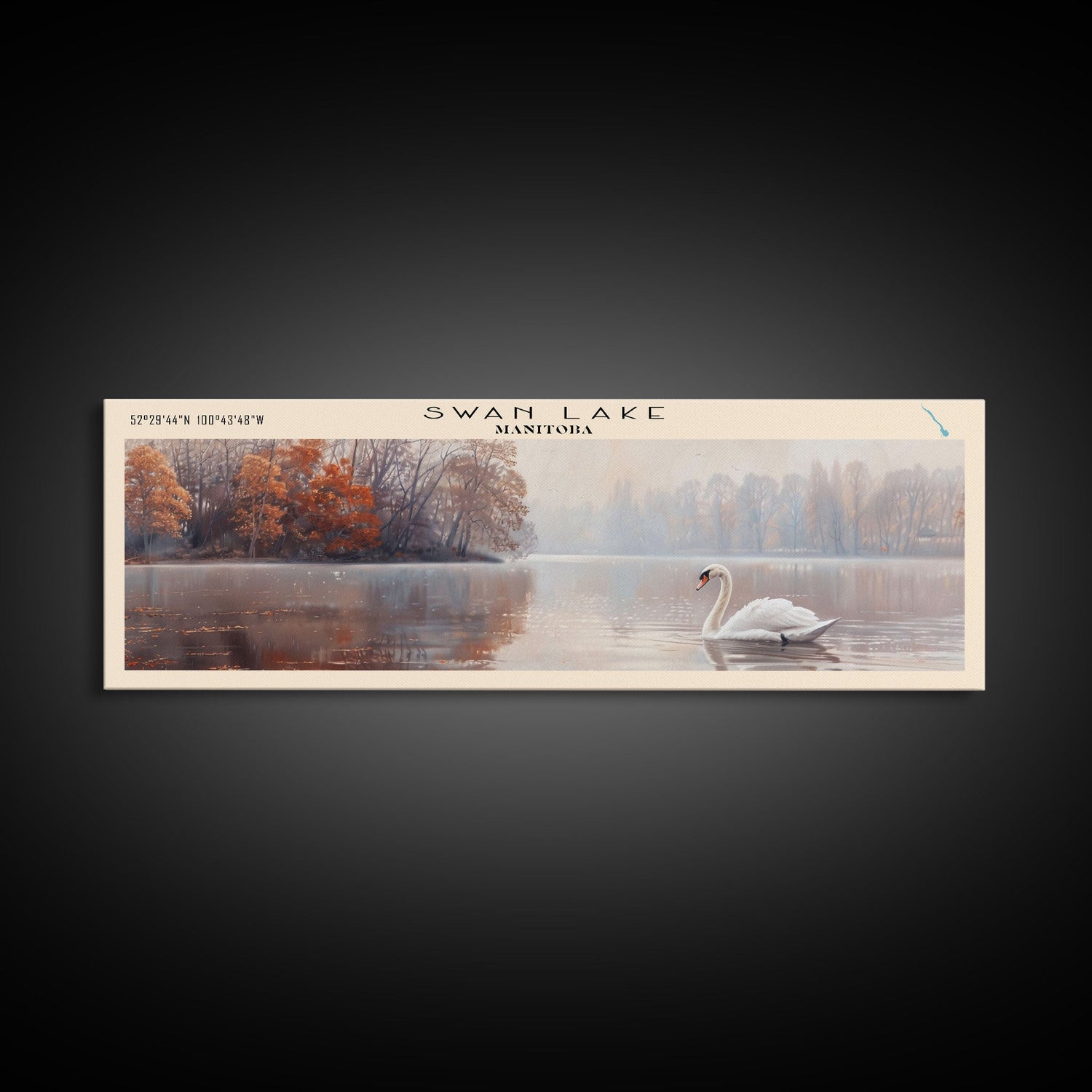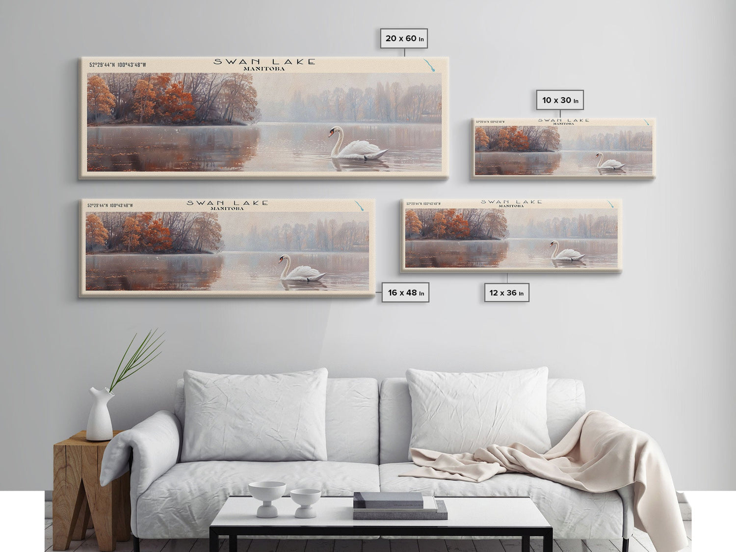 Swan Lake Panoramic Wall Art, Framed Canvas Print, Lake House Decor, Travel Poster, Scenic Lake Painting, Living Room Decor
