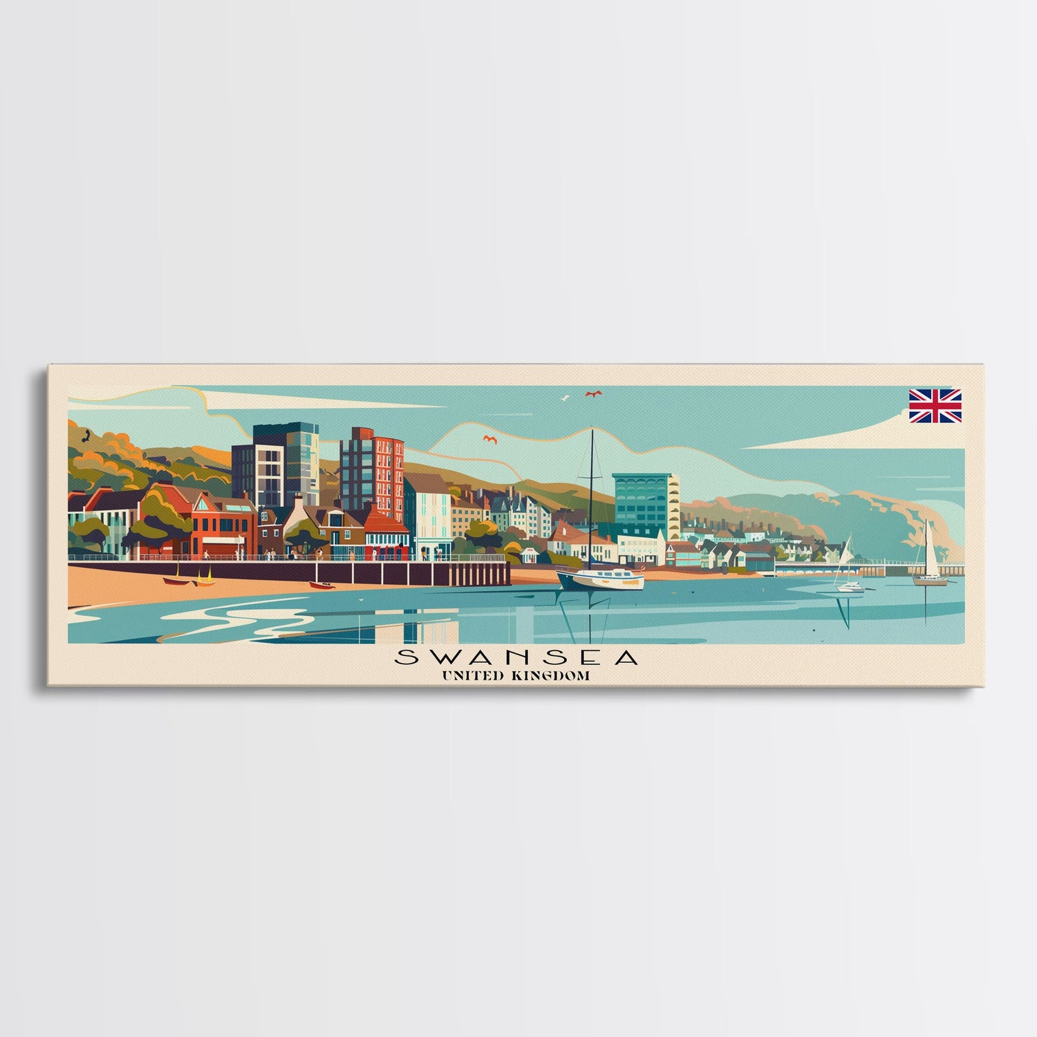 Swansea United Kingdom Wall Art, Panoramic Travel Poster, Panoramic Framed Canvas Print, City Wall Art, Wall Hanging Home Decor, Travel Art