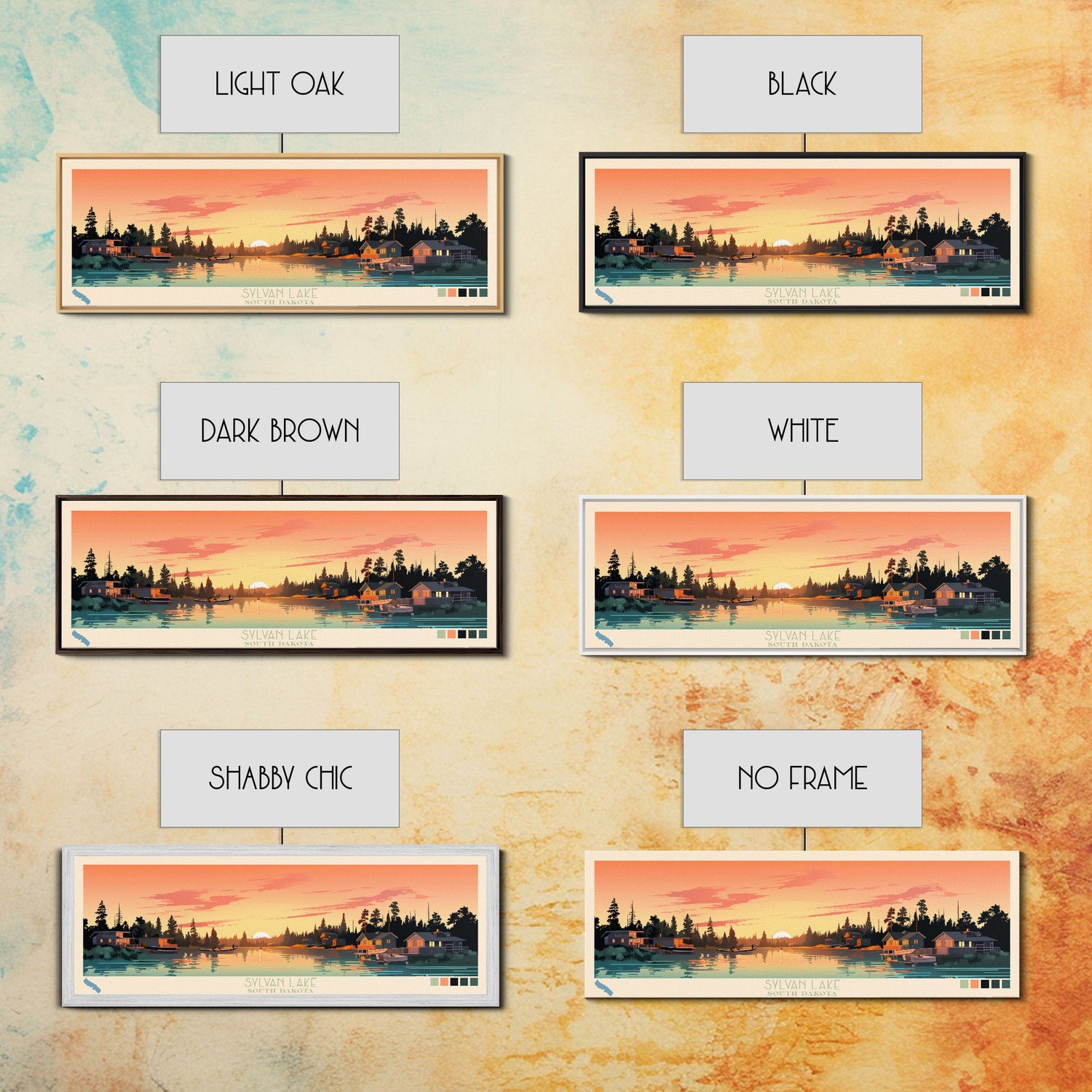 Sylvan Lake, South Dakota Framed Canvas Print, Lake House Art, Midcentury Modern Decor, Pop Art, Travel Poster, Living Room Wall Art - 10x30 Inches / No Frame - Stretched Canvas Only está agotado y se enviará tan pronto como vuelva a estar disponible.
