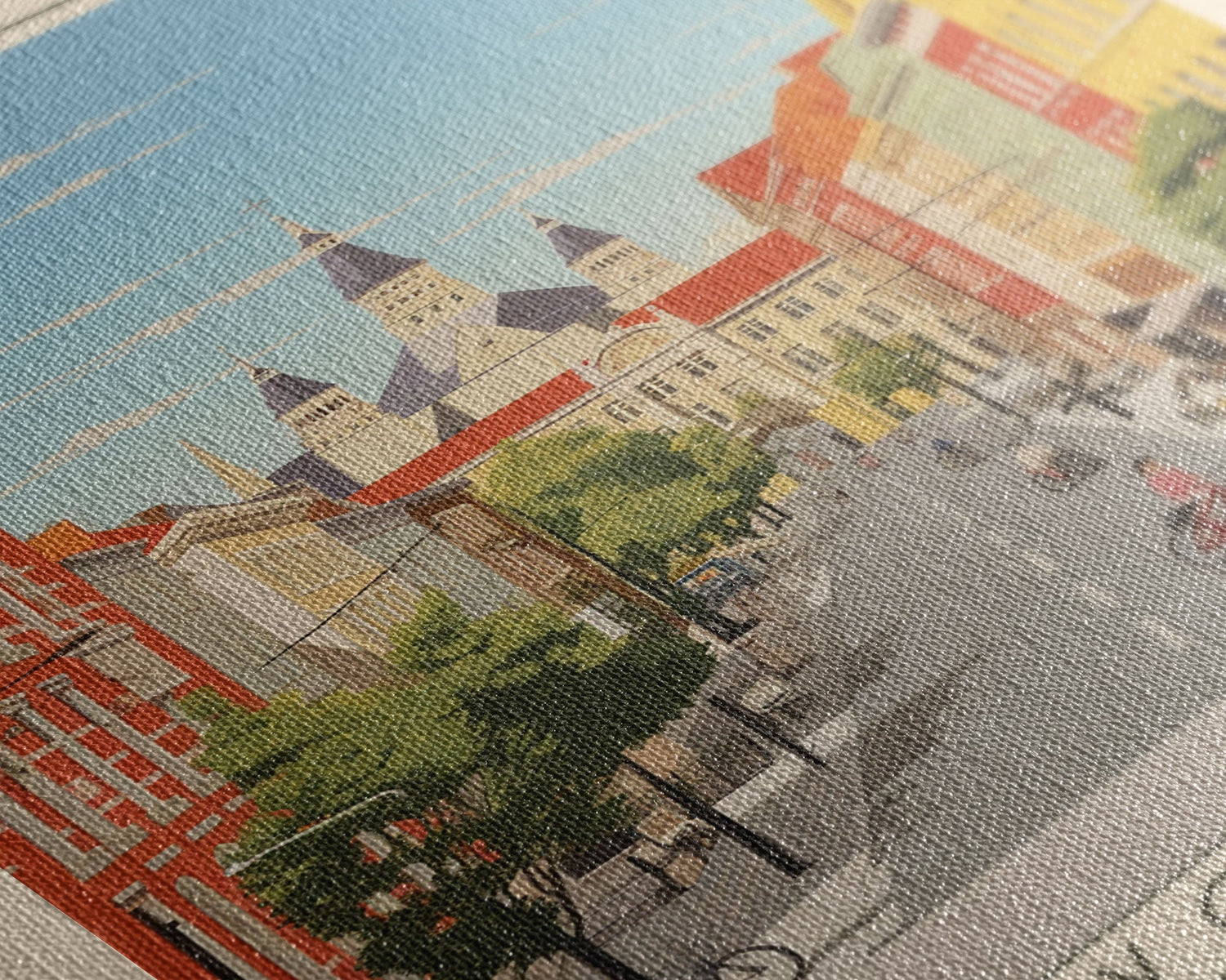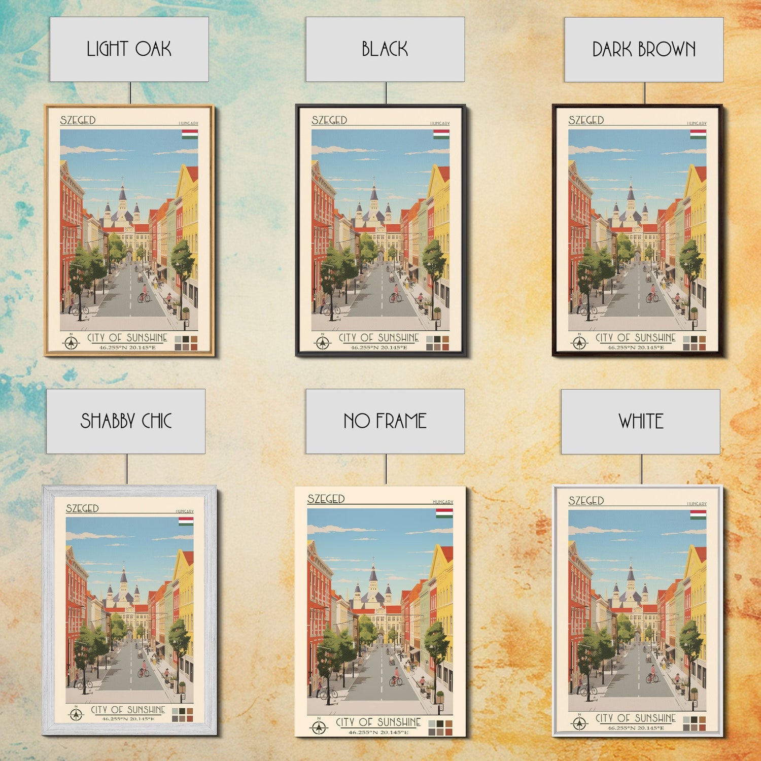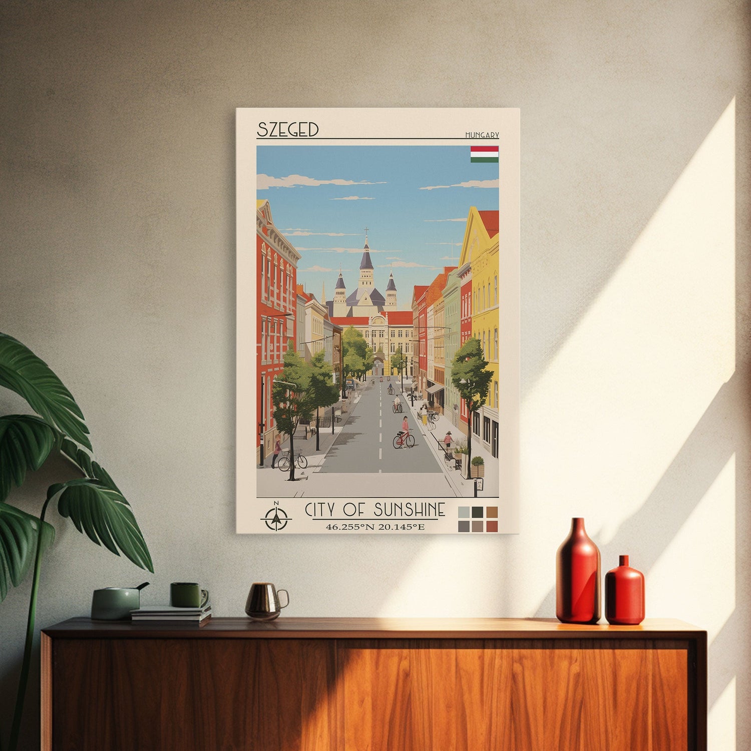 Szeged Hungary Travel Poster Framed Canvas Print, Midcentury Modern Art, Pop Art Wall Decor, Living Room Art, Vacation Gift