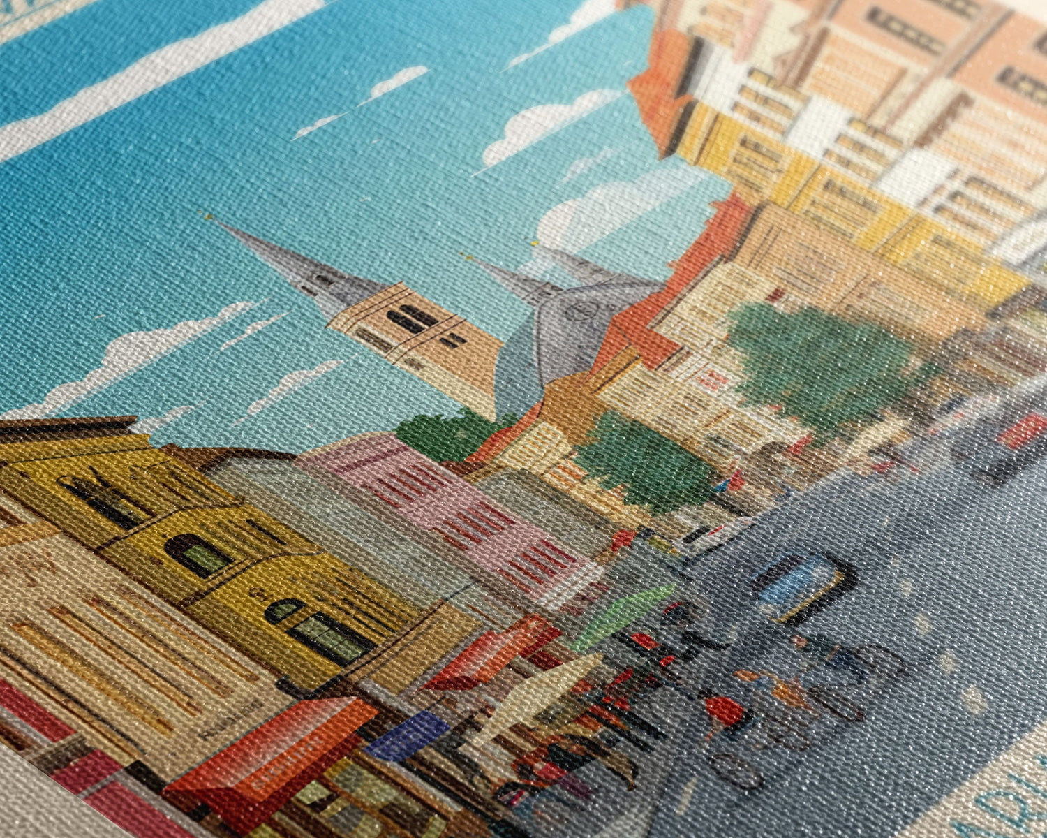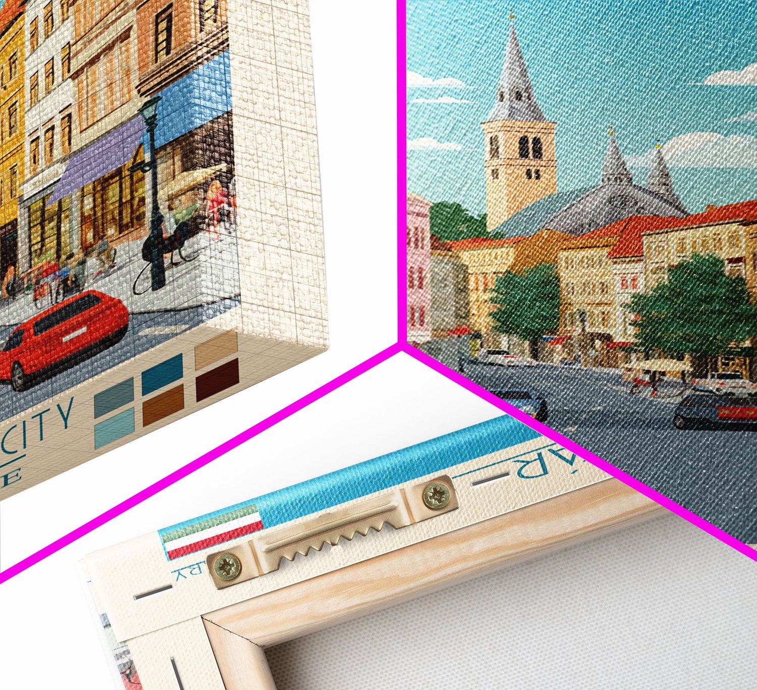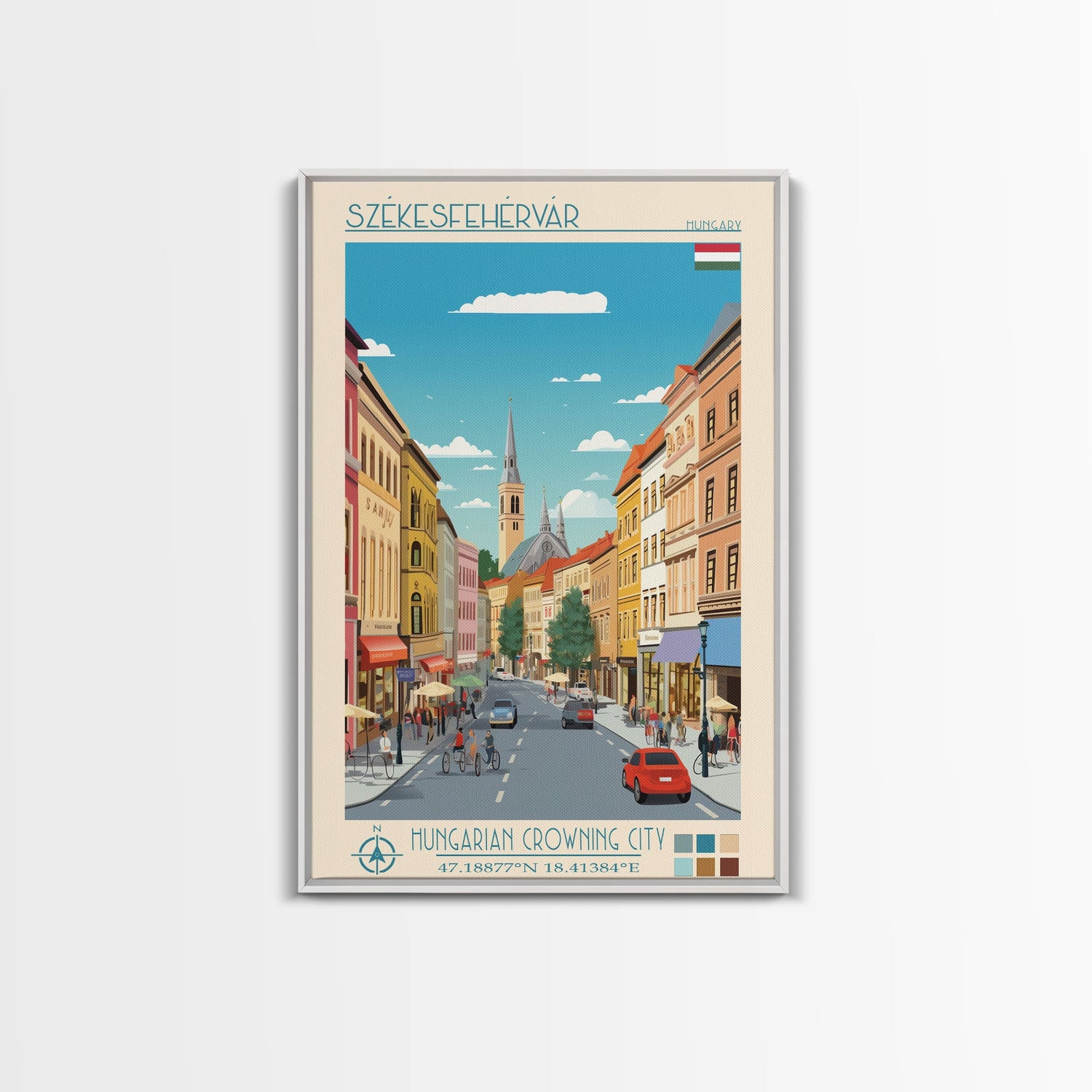 Székesfehérvár Hungary Travel Poster Framed Canvas Print, Midcentury Modern Art, Pop Art Wall Decor, Living Room Art, Vacation Gift