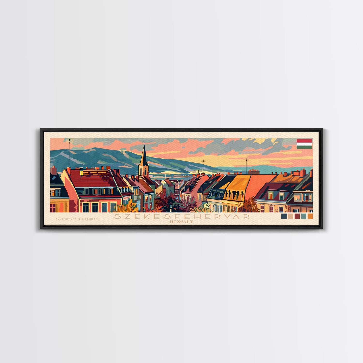 Szkesfehervar Hungary Panoramic Travel Poster, Framed Canvas Print or Metal Wall Art, Travel Art, Home Decor, Panoramic Painting, Midcentury Art