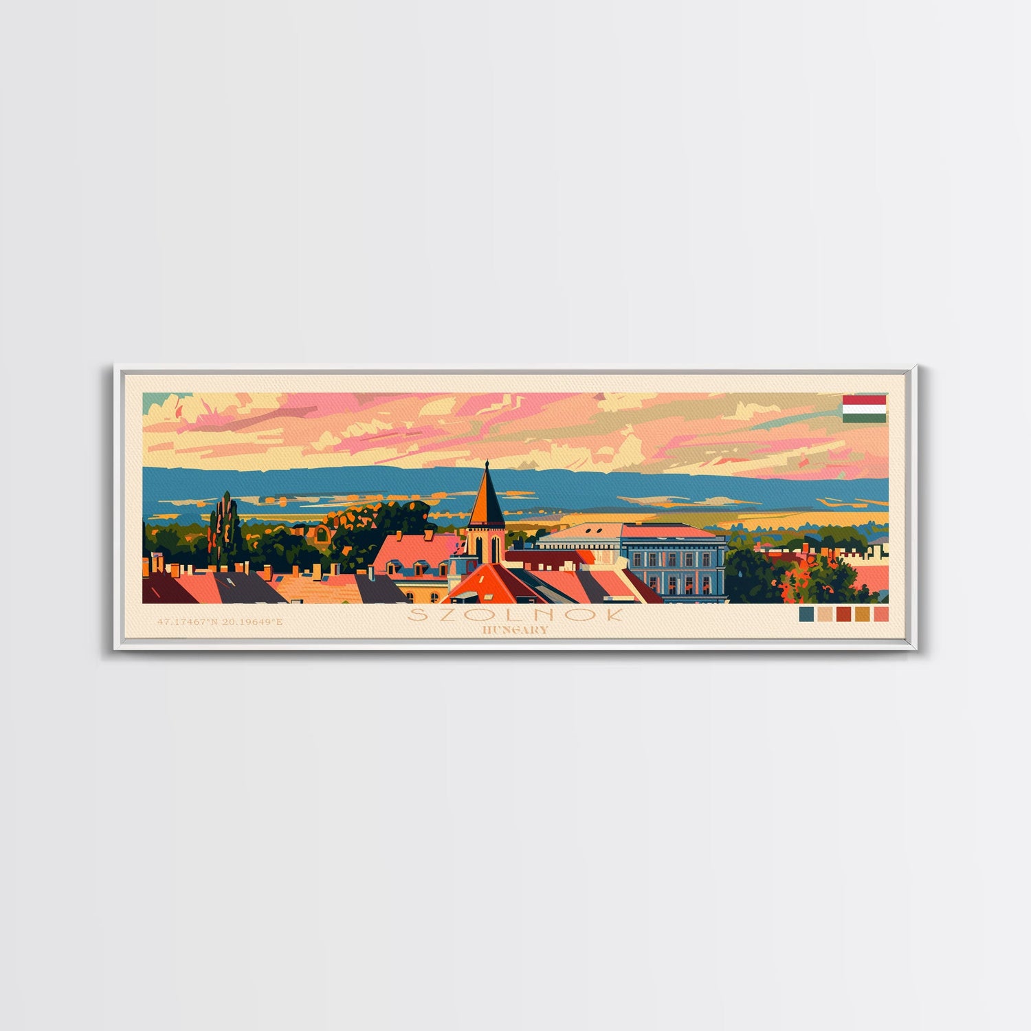 Szolnok Hungary Wall Art, Panoramic Travel Poster, Panoramic Framed Canvas Print, City Wall Art, Wall Hanging Home Decor, Travel Art