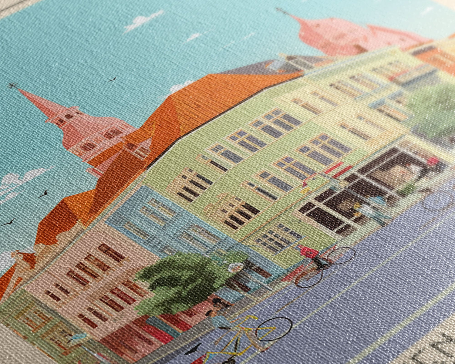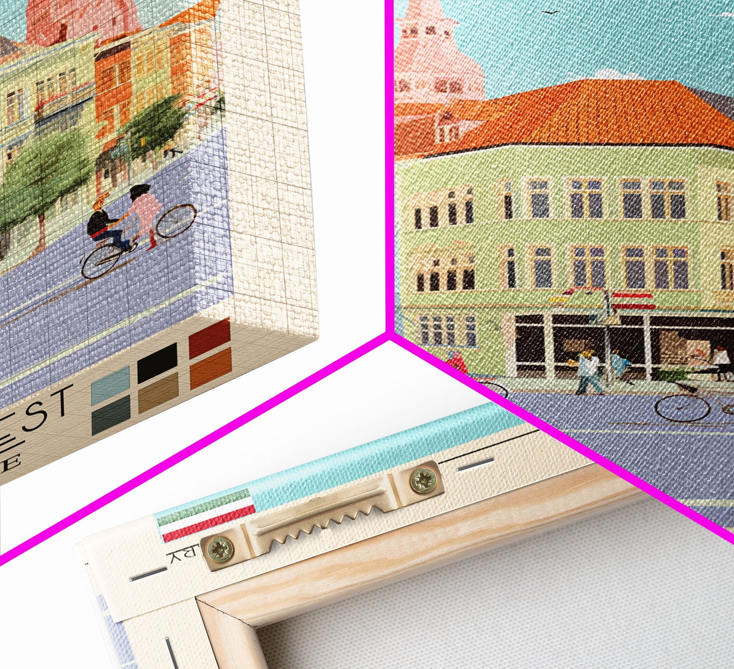Szombathely Hungary Travel Poster Framed Canvas Print, Midcentury Modern Art, Pop Art Wall Decor, Living Room Art, Scenic Wall Art