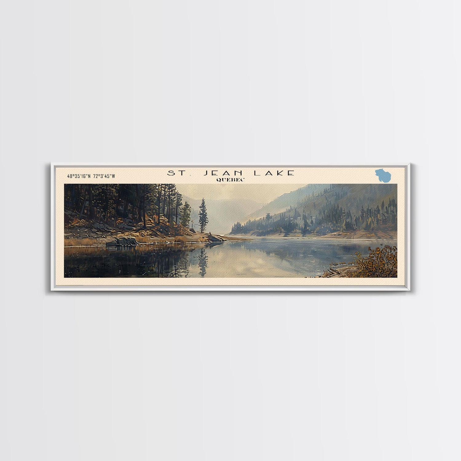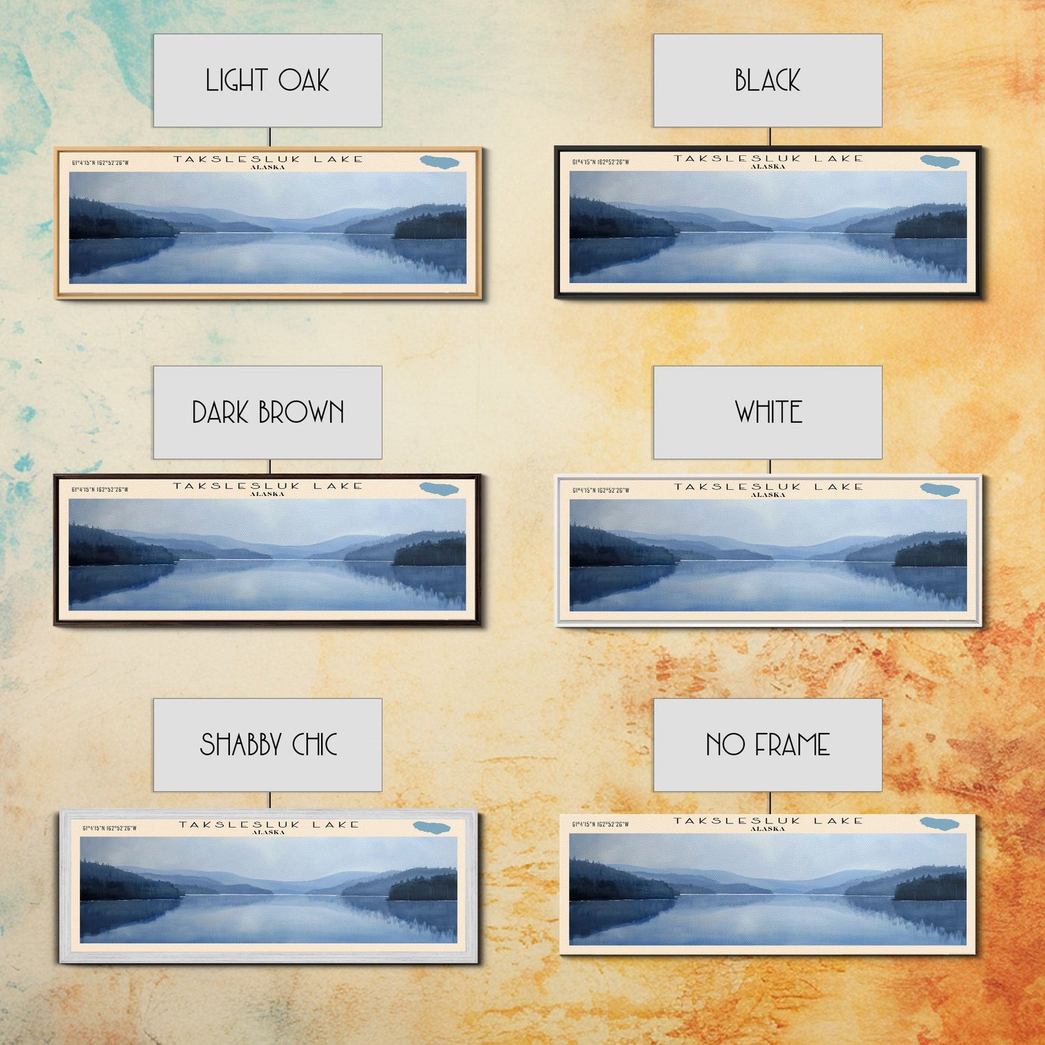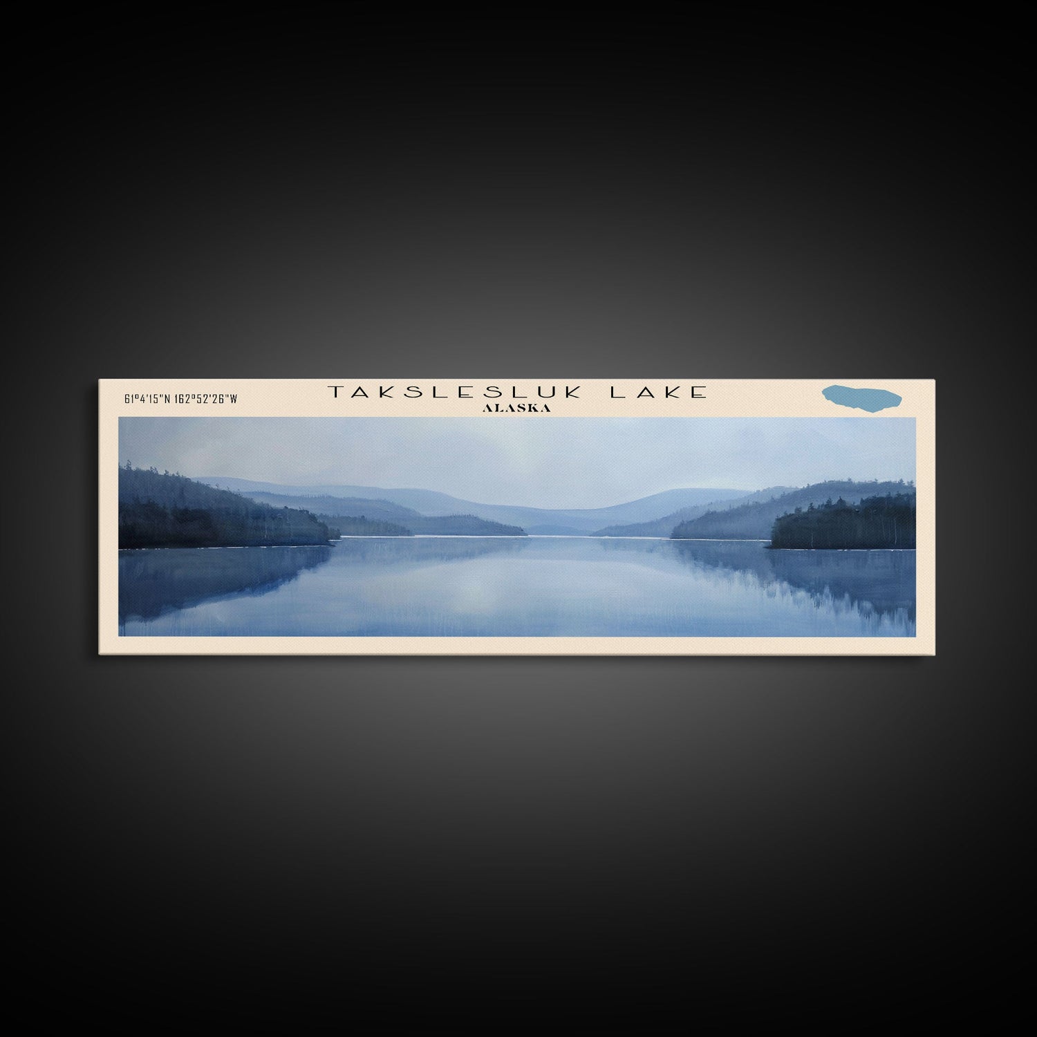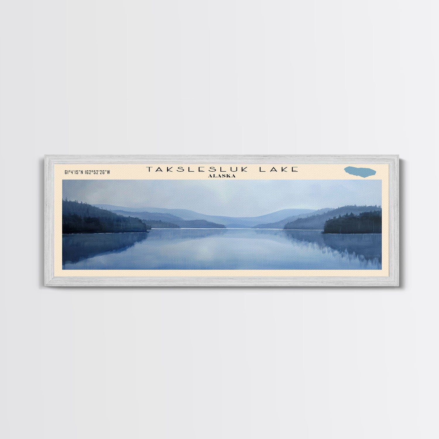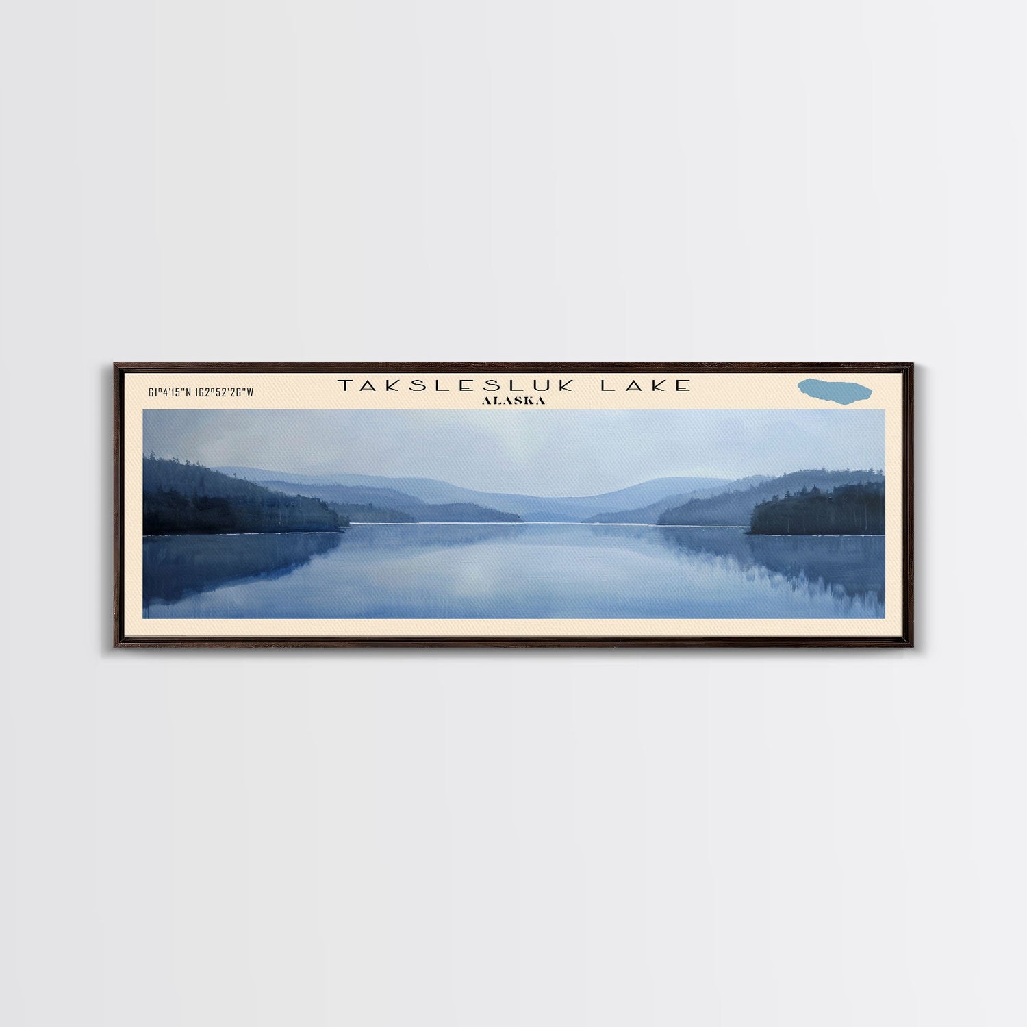 Takslesluk Lake Panoramic Wall Art, Framed Canvas Print, Lake House Decor, Travel Poster, Serene Lake Scene, Living Room Decor