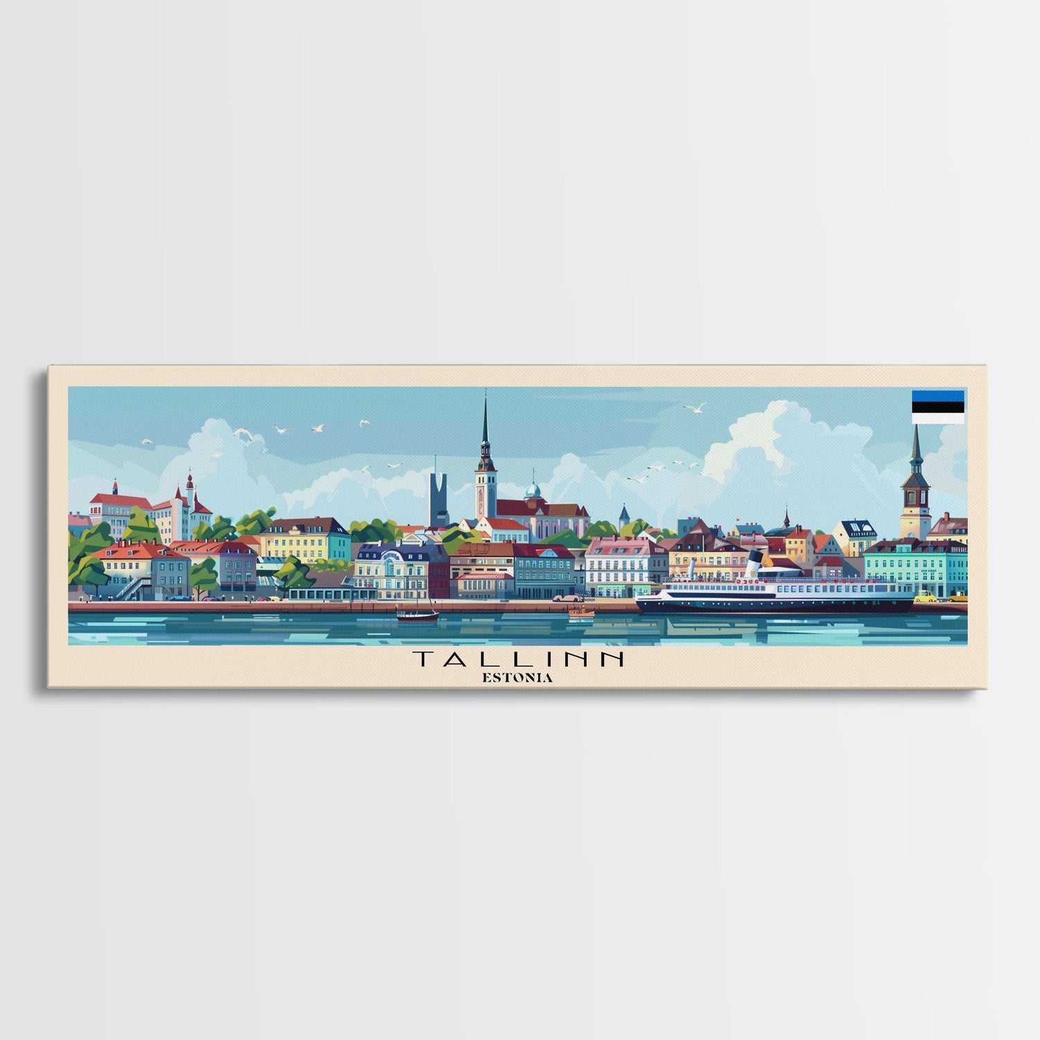 Tallinn Estonia Panoramic Travel Poster, Framed Canvas Print or Metal Wall Art, Travel Art, Home Decor, Panoramic Painting, Midcentury Art