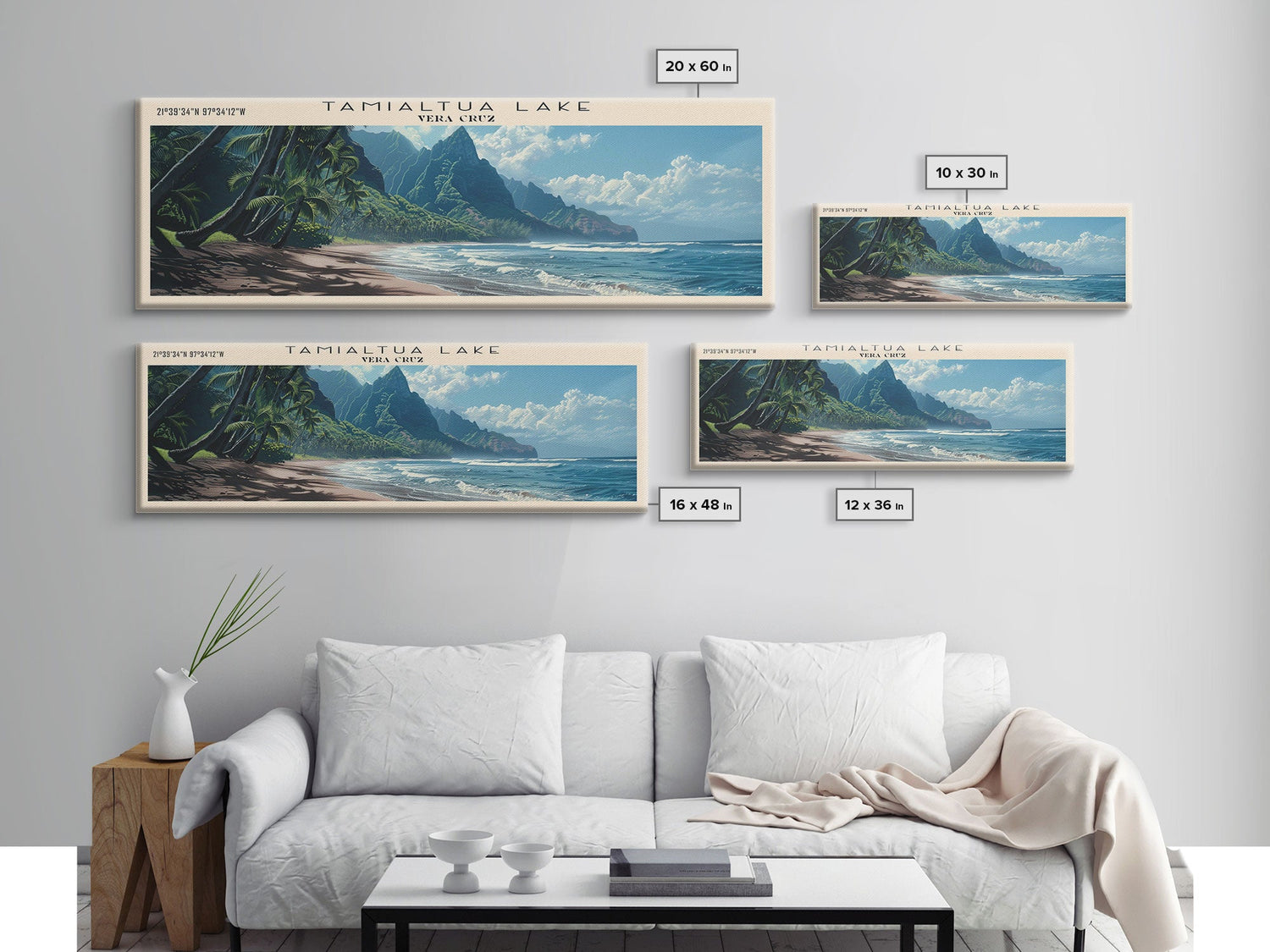 Tamiahua Panoramic Wall Art, Framed Canvas Print, Lake House Decor, Travel Poster, Beautiful Lake Painting, Bedroom Decor