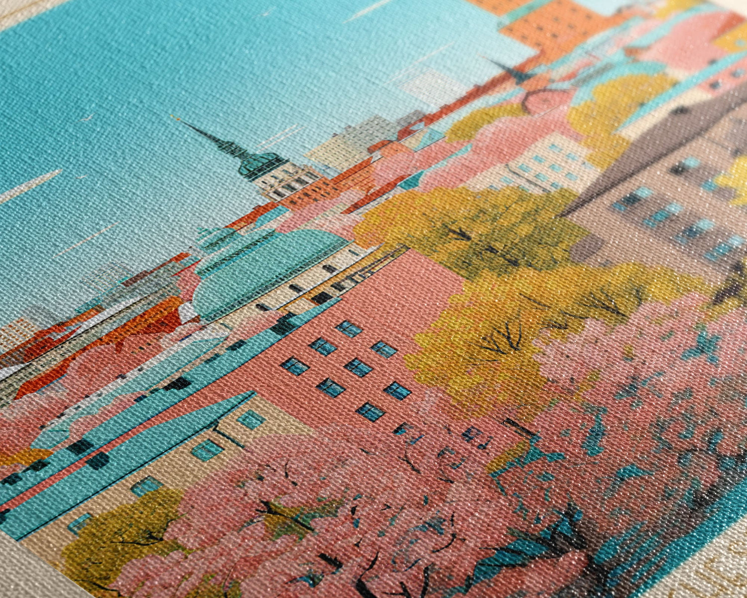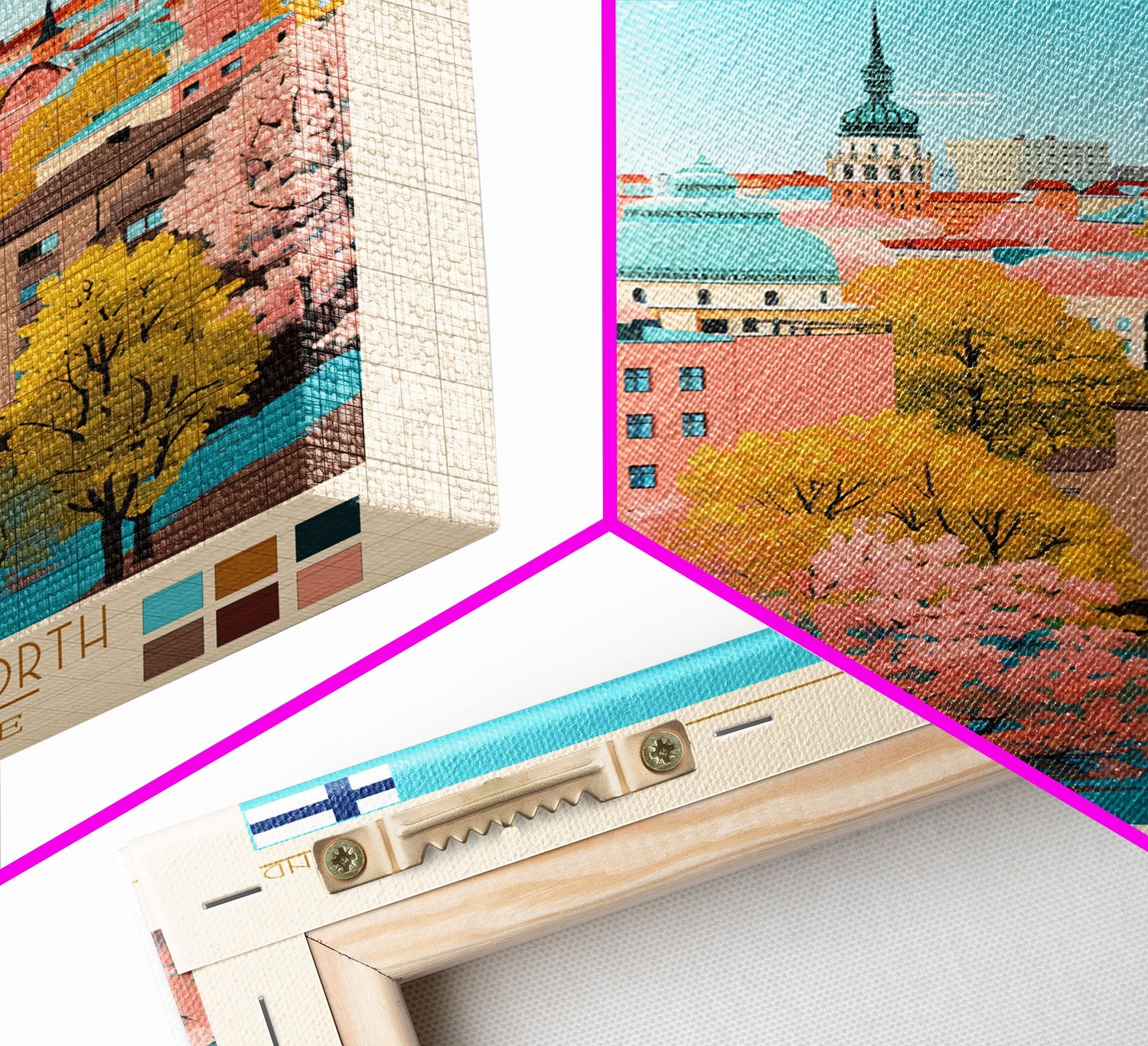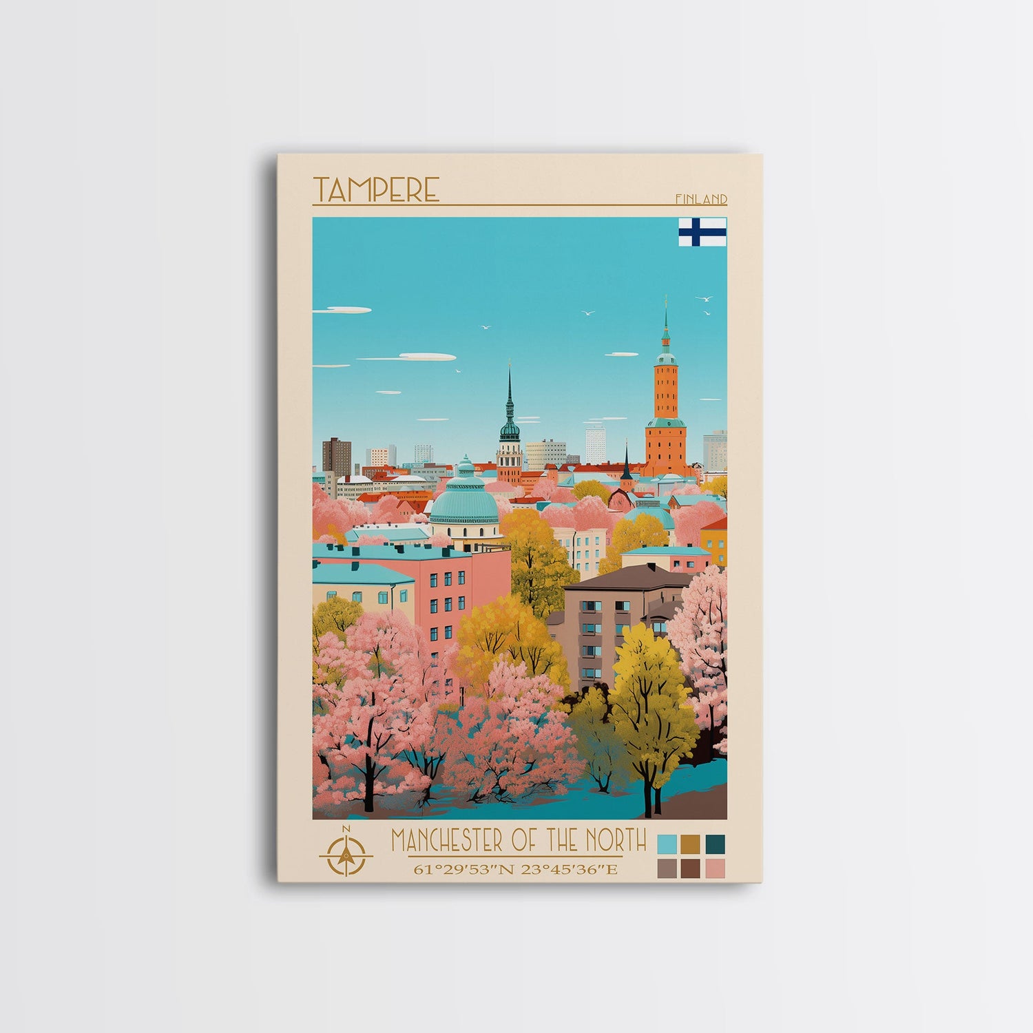 Tampere Finland Travel Poster Framed Canvas Print, Midcentury Modern Art, Pop Art Wall Decor, Living Room Art, Vacation Gift