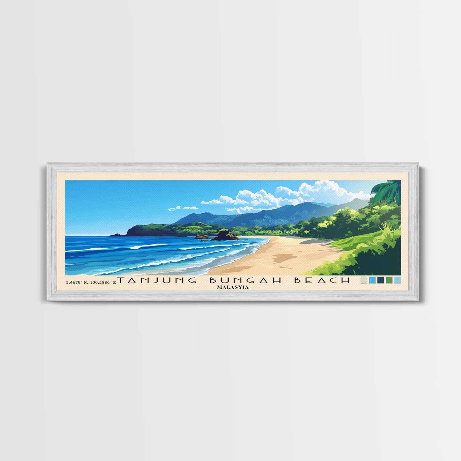Tanjung Bungah Beach, Malasyia Panoramic Print, Vacation Gift, Malasyia Wall Art, Beach Painting, Beach Decor, Beach Or Lakehouse Art