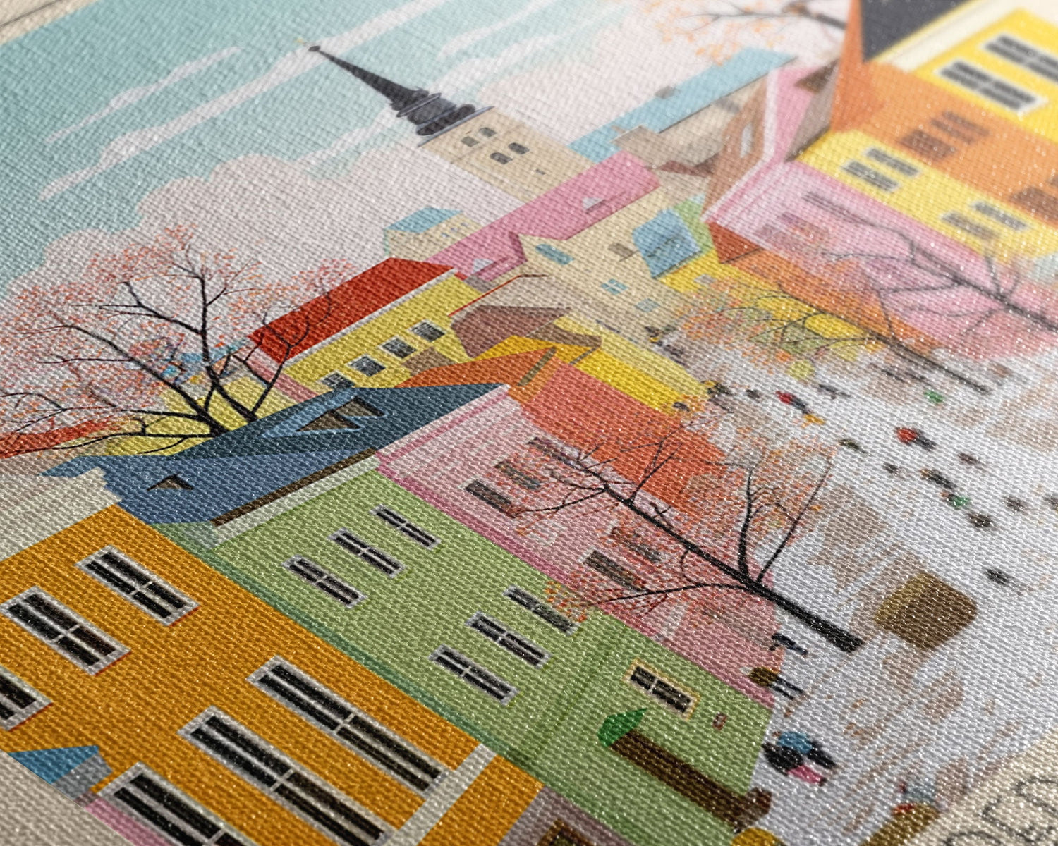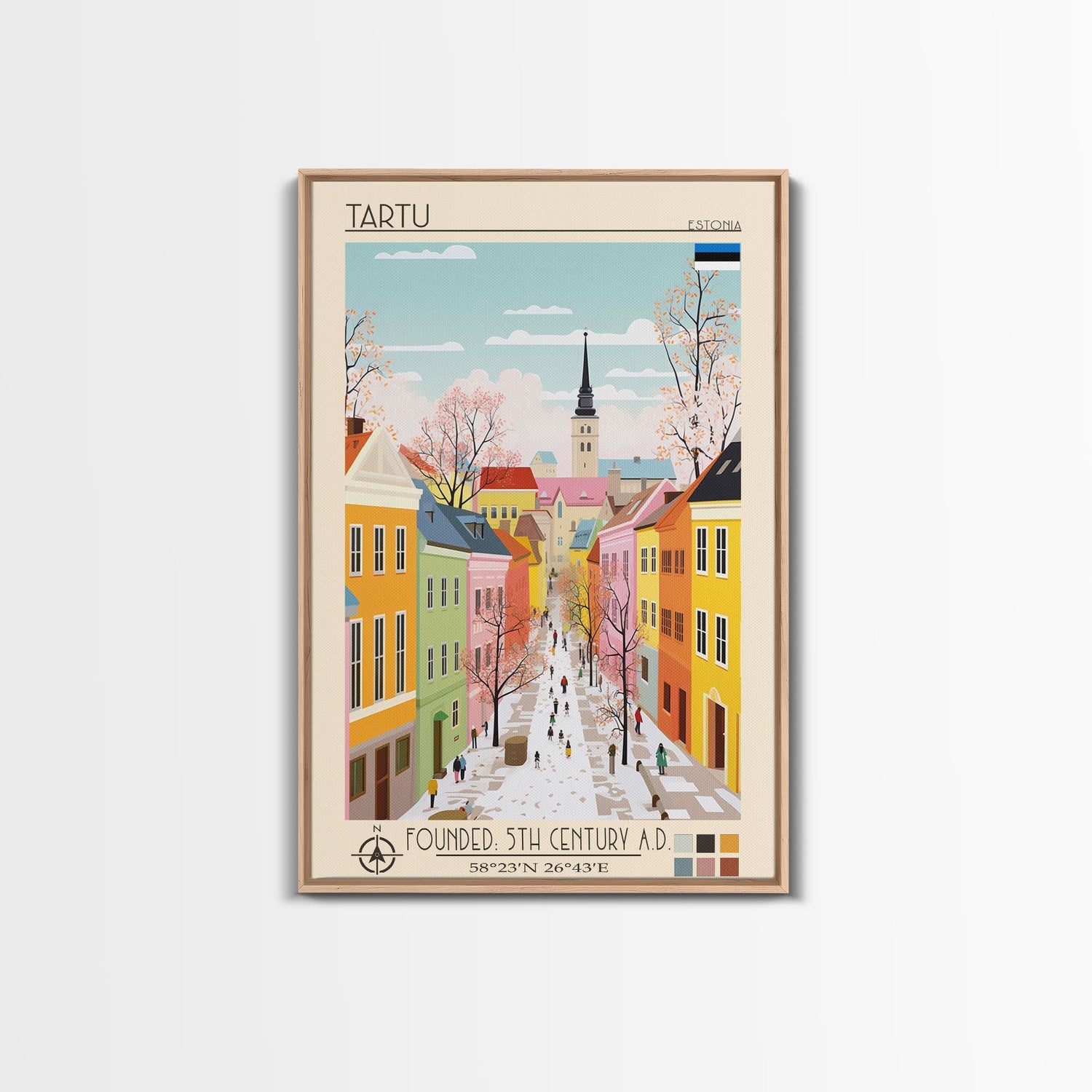 Tartu Estonia Travel Poster Framed Canvas Print, Midcentury Modern Art, Pop Art Wall Decor, Living Room Art, Home Decoration
