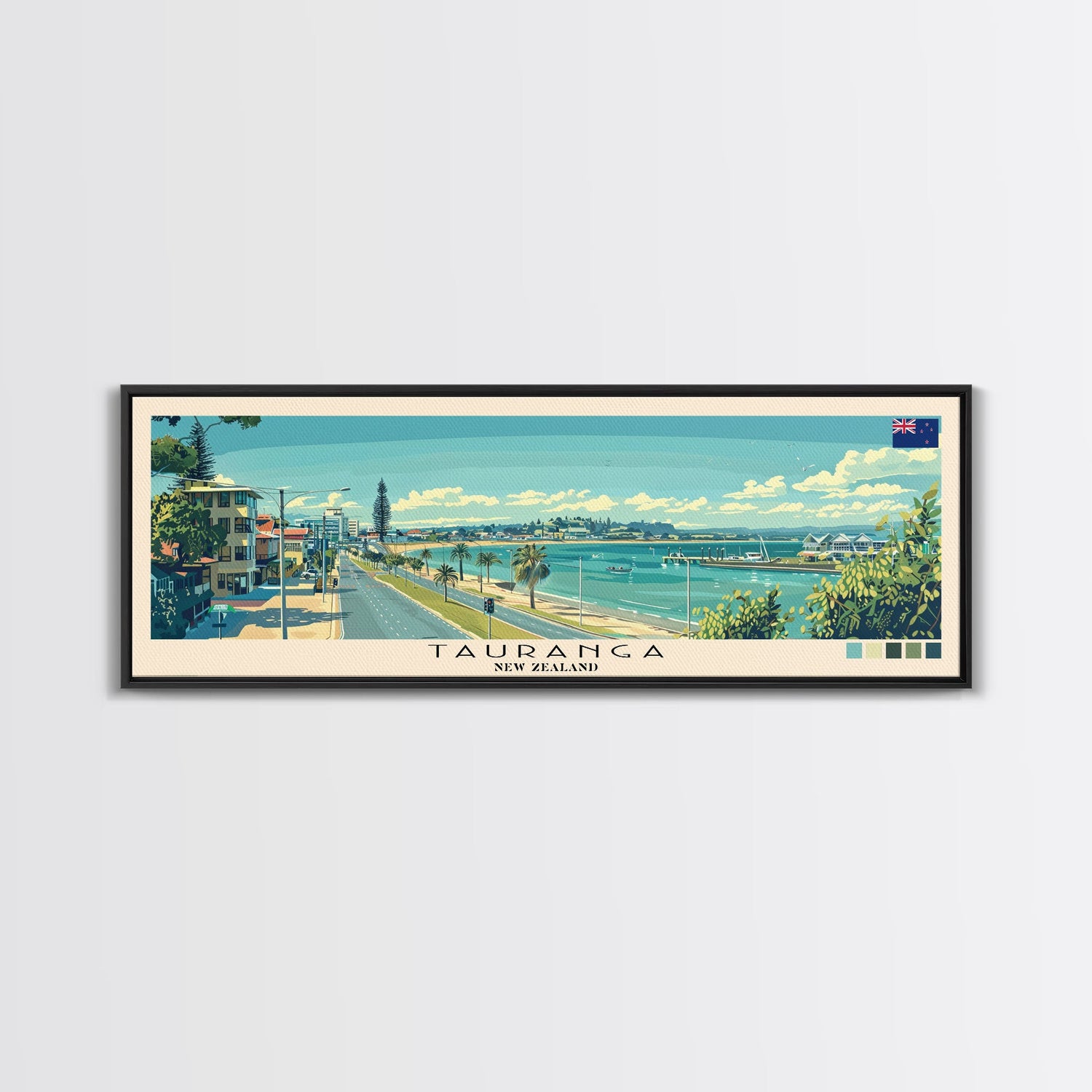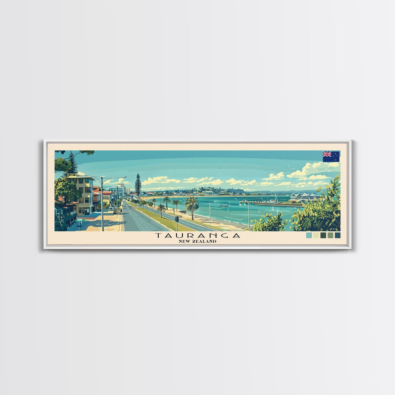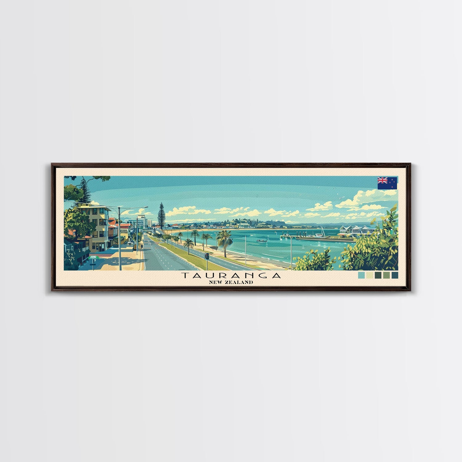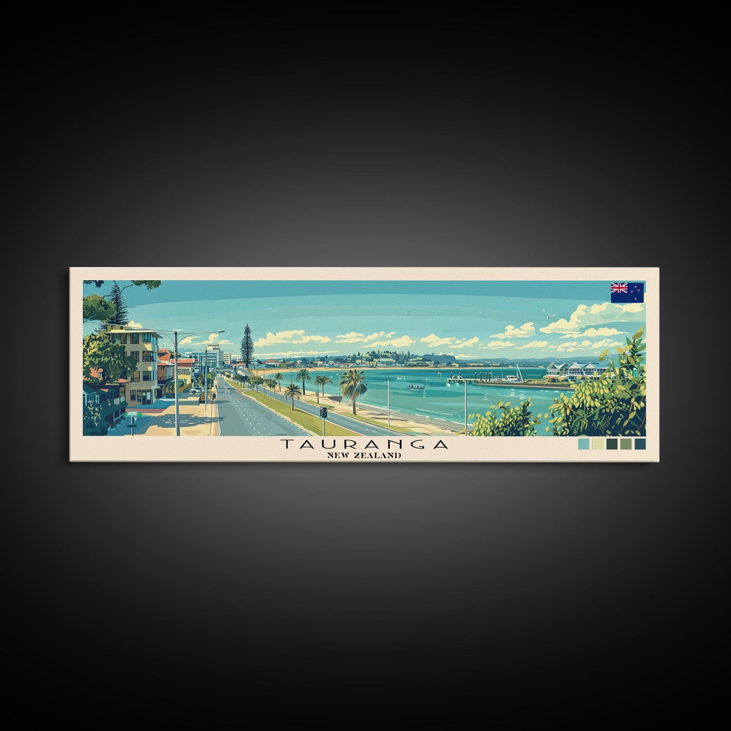Tauranga, New Zealand Panoramic Canvas Print, Tauranga, New Zealand Painting, New Zealand Art, Tauranga Travel Poster, Travel Art, Guest Room Painting