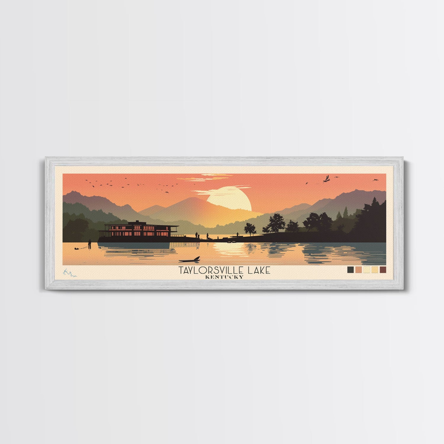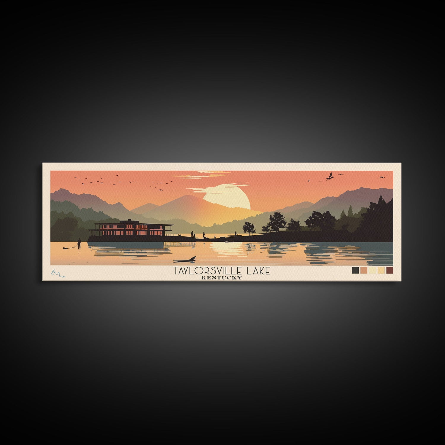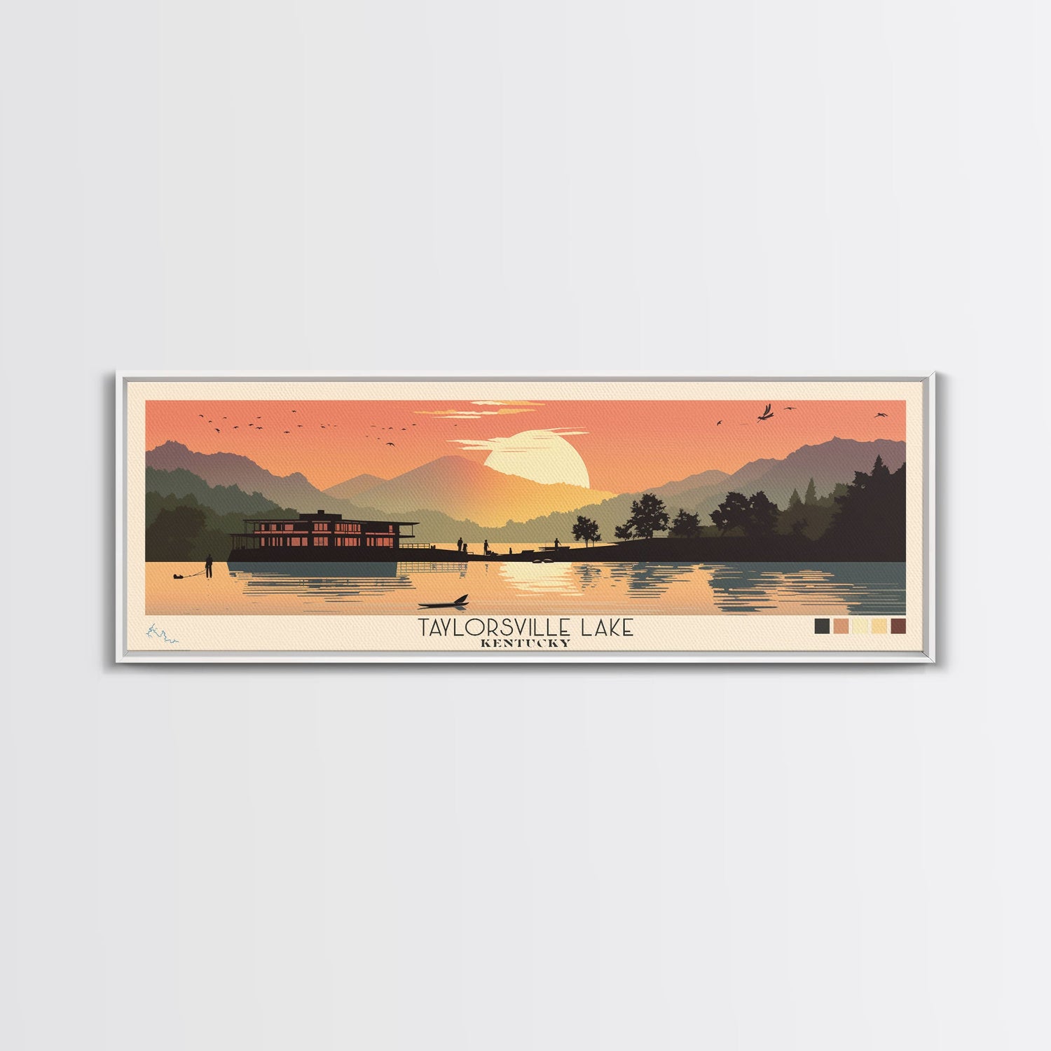 Taylorsville Lake, Kentucky Framed Canvas Print, Lake House Art, Midcentury Modern Decor, Pop Art, Travel Poster, Bedroom Wall Art