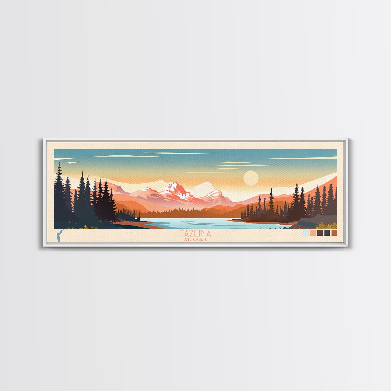 Tazlina Lake, Alaska Framed Canvas Print, Lake House Decor, Midcentury Modern Art, Pop Art, Travel Poster, Living Room Wall Art - 10x30 Inches / No Frame - Stretched Canvas Only está agotado y se enviará tan pronto como vuelva a estar disponible.