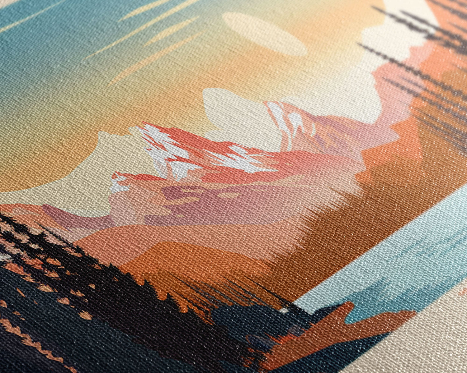 Tazlina Lake, Alaska Framed Canvas Print, Lake House Decor, Midcentury Modern Art, Pop Art, Travel Poster, Living Room Wall Art