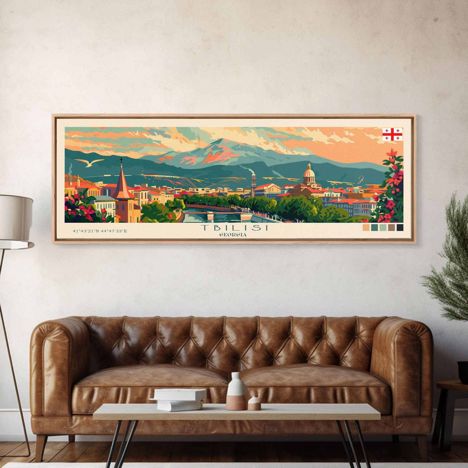 Tbilisi Georgia Travel Art, City Art, Framed Canvas Print or Metal Wall Art, Europe Travel Poster, Panoramic Wall Art, Extra Wide Wall Art