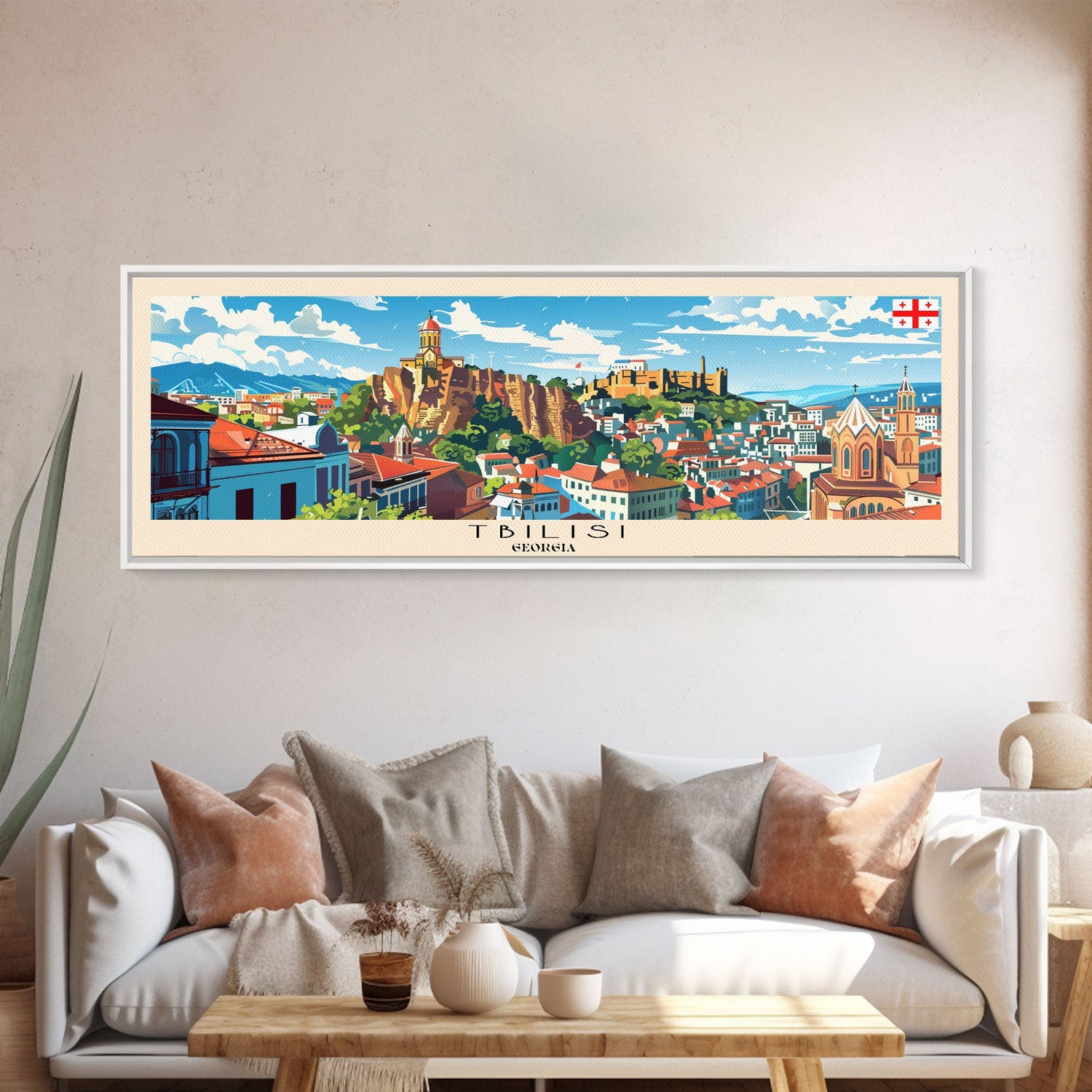 Tbilisi Georgia Travel Art, City Art, Framed Canvas Print or Metal Wall Art, Europe Travel Poster, Panoramic Wall Art, Extra Wide Wall Art