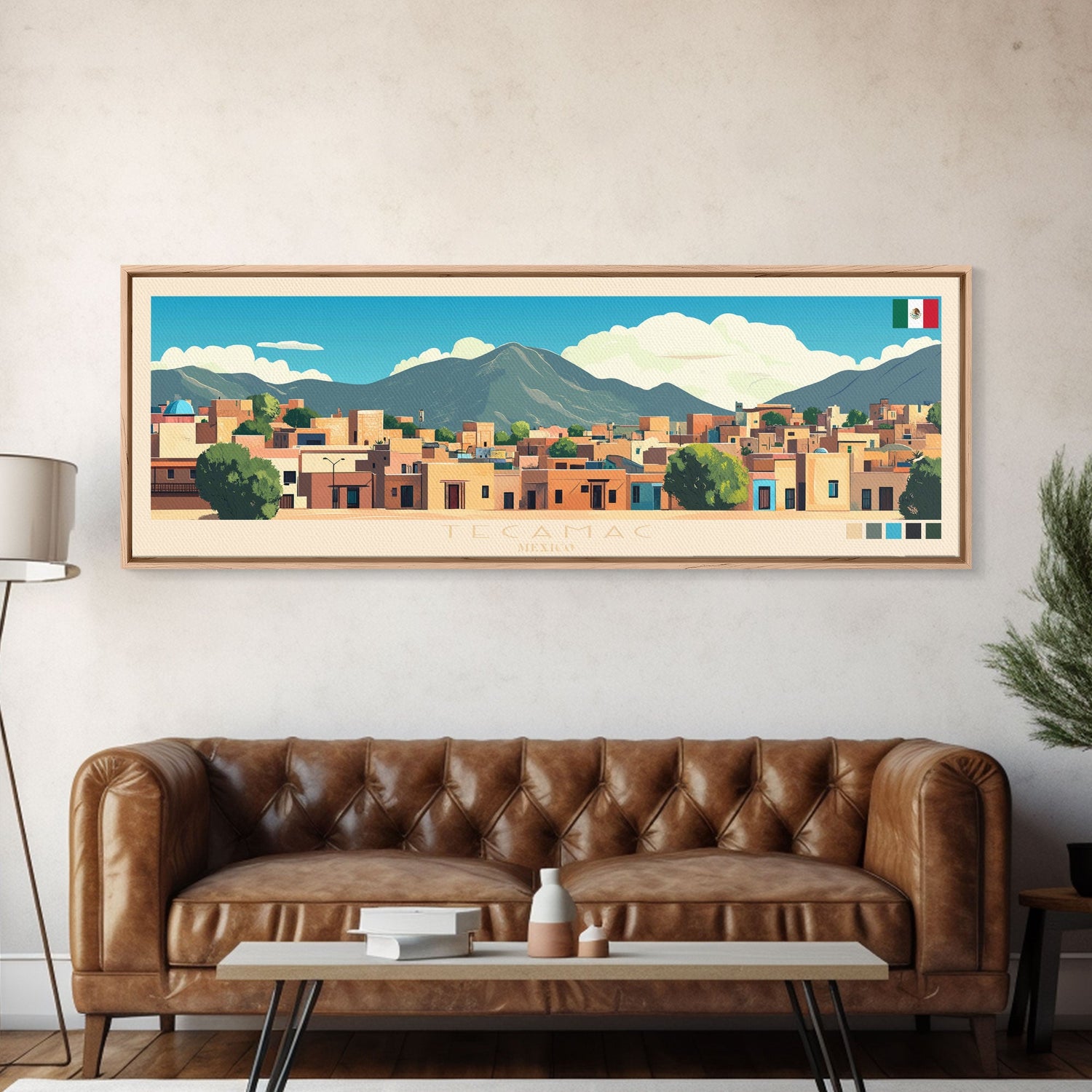 Tecamac, Mexico Panoramic Travel Poster Canvas Print, Tecamac, Mexico Painting, Mexico Art, Tecamac Travel Art, Guest Room Painting