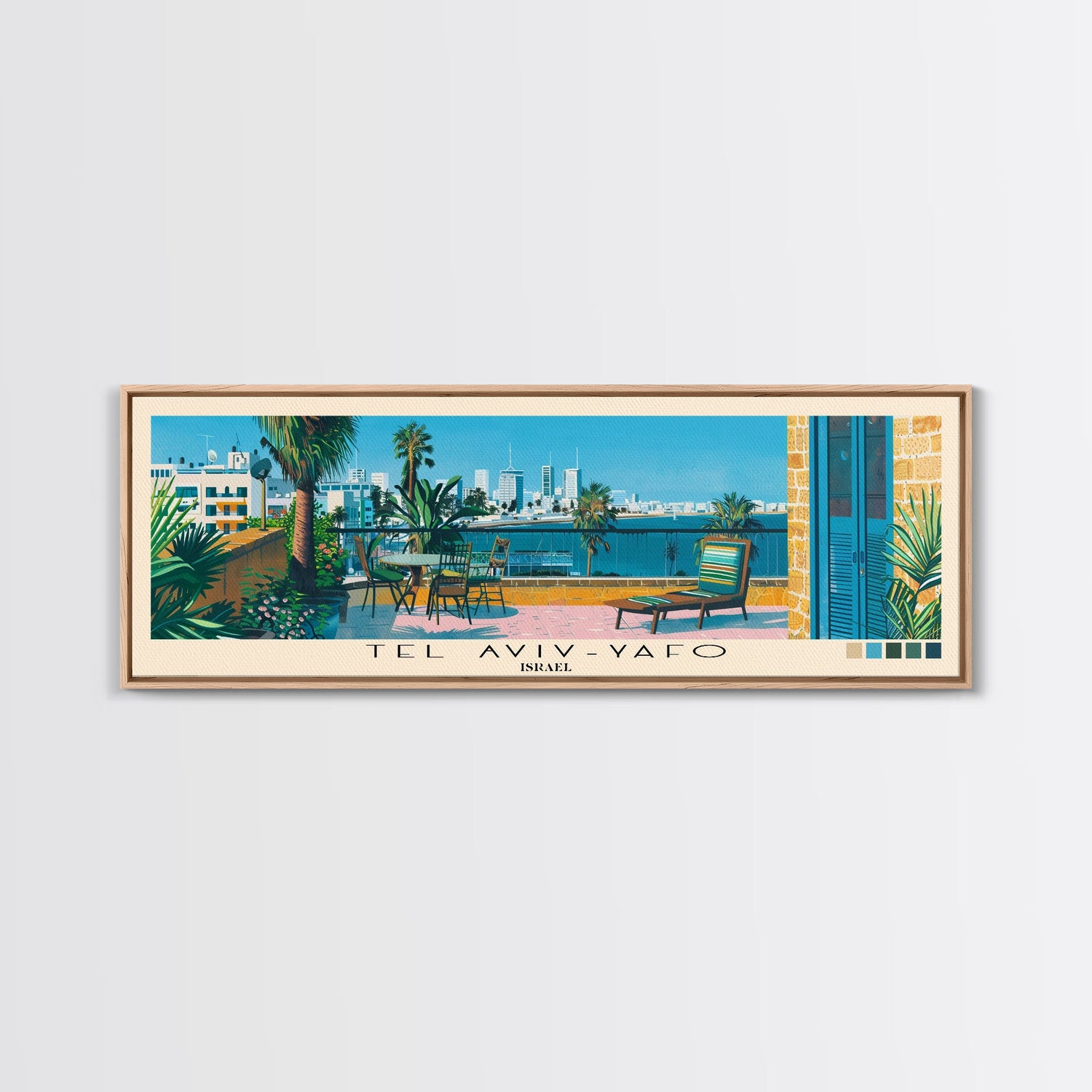 Tel Aviv-Yafo, Israel Panoramic Canvas Print, Tel Aviv-Yafo, Israel Painting, Israel Art, Tel Aviv-Yafo Travel Poster, Travel Art, Living Room Painting