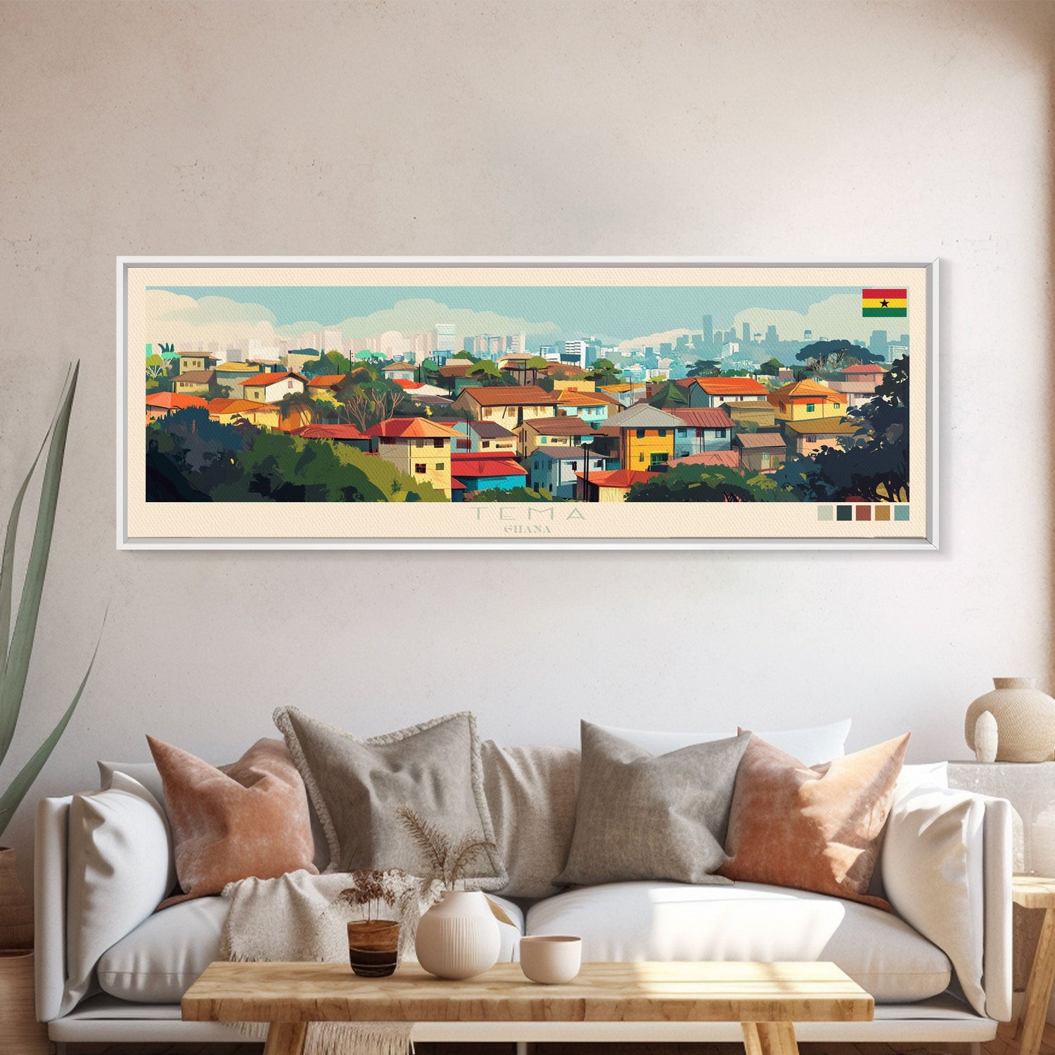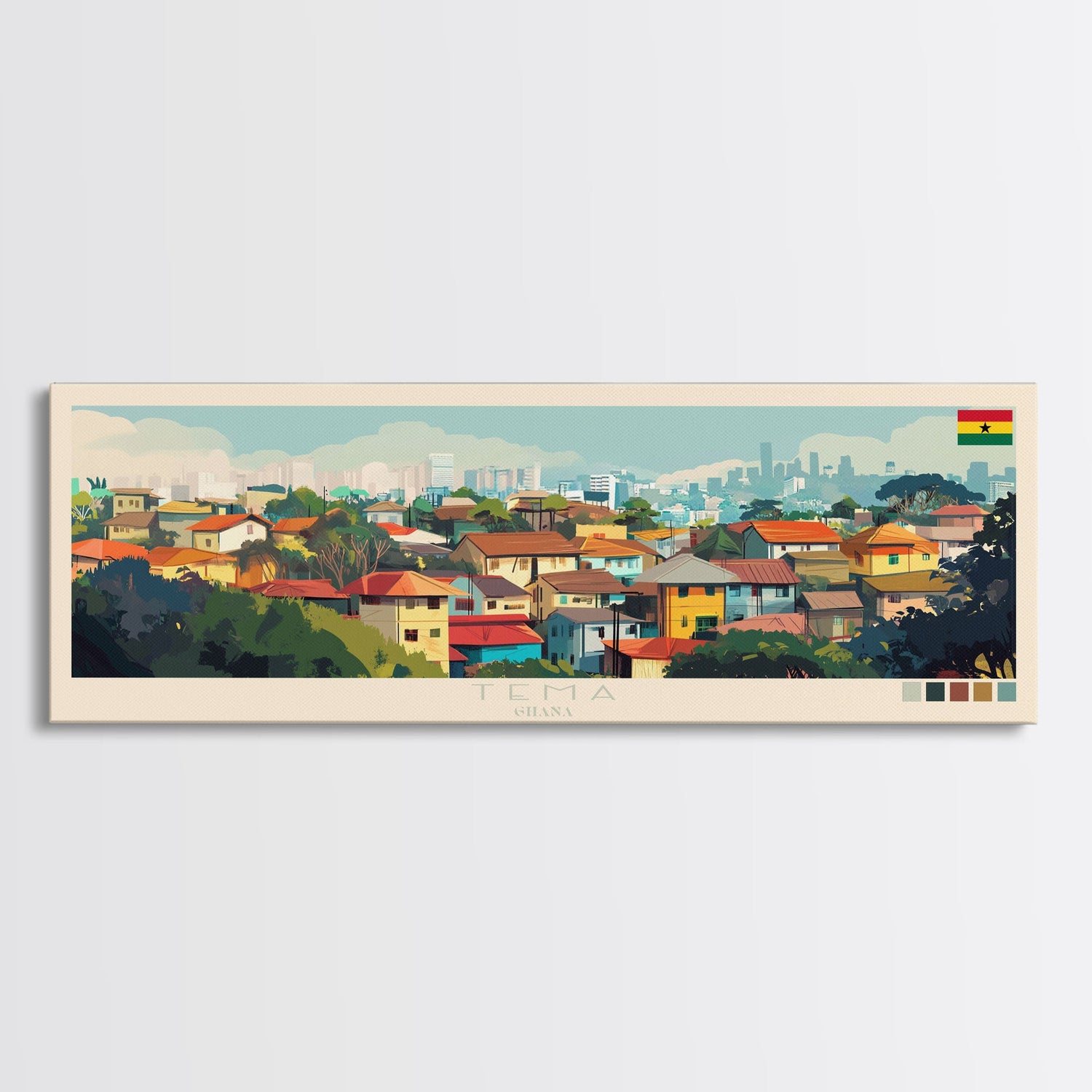 Tema, Ghana Panoramic Travel Poster Canvas Print, Tema, Ghana Painting, Ghana Art, Tema Panoramic Travel Art, Travel Painting