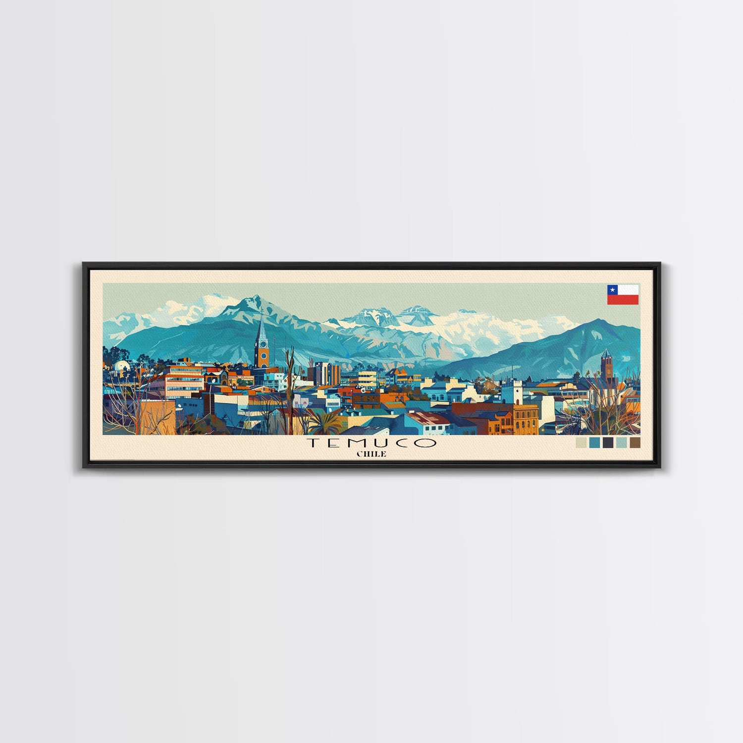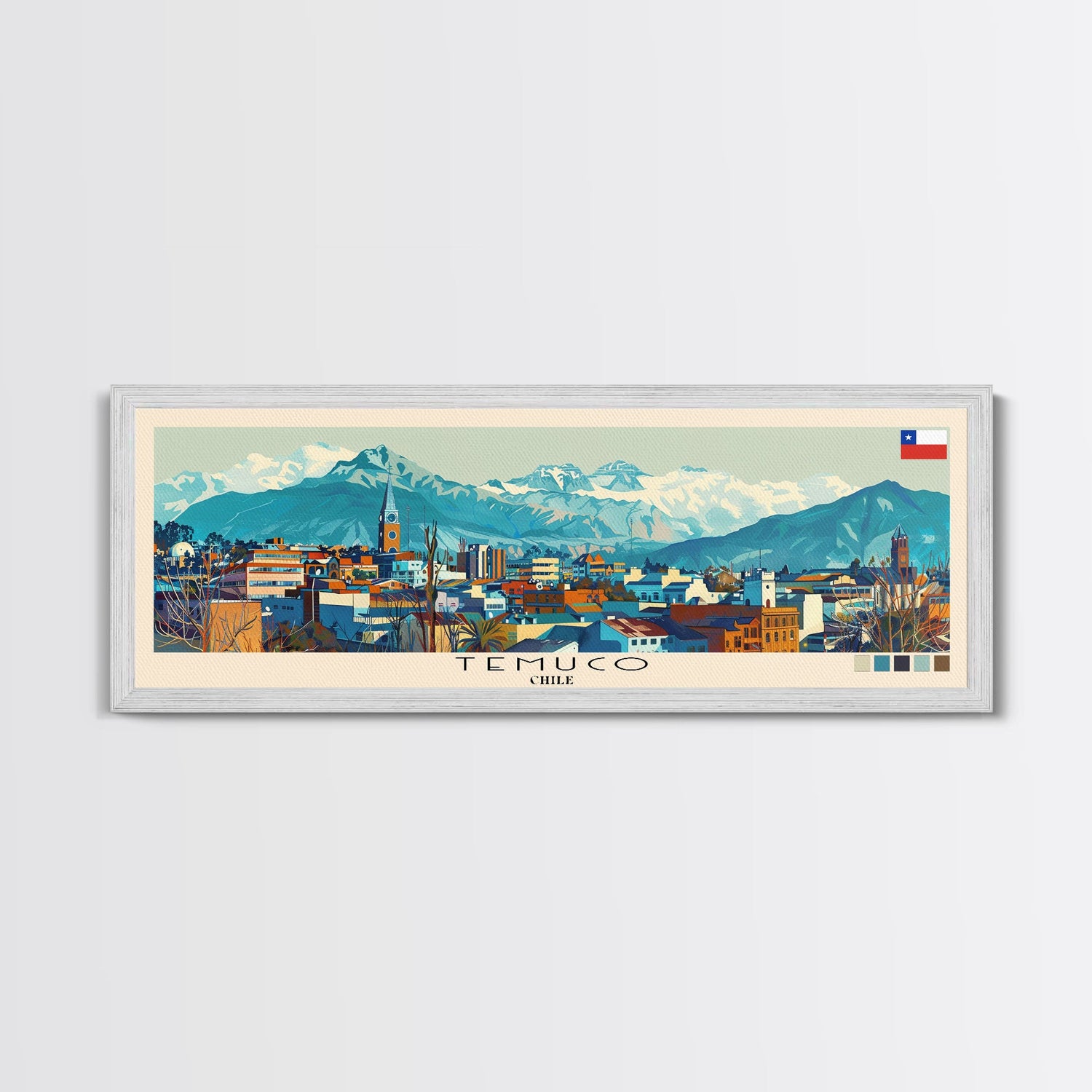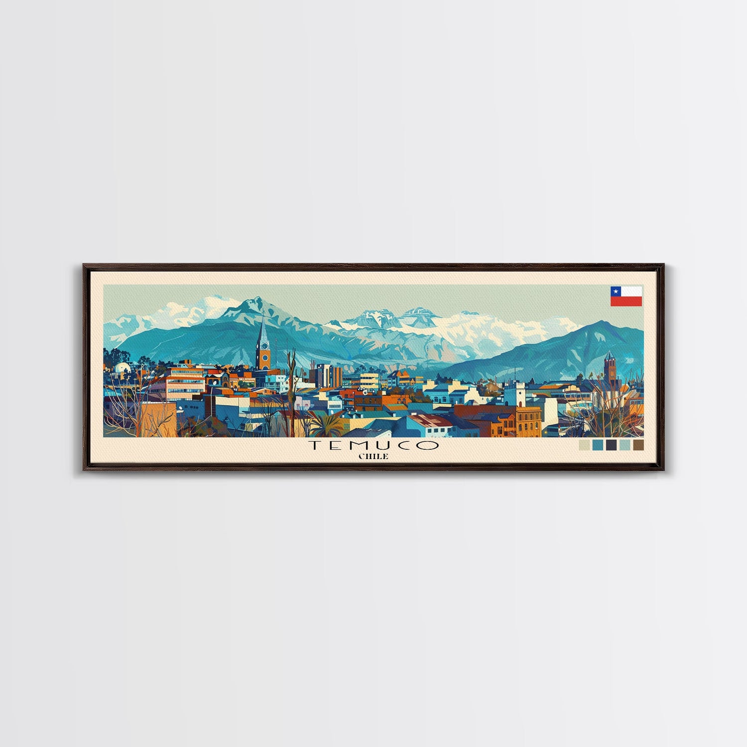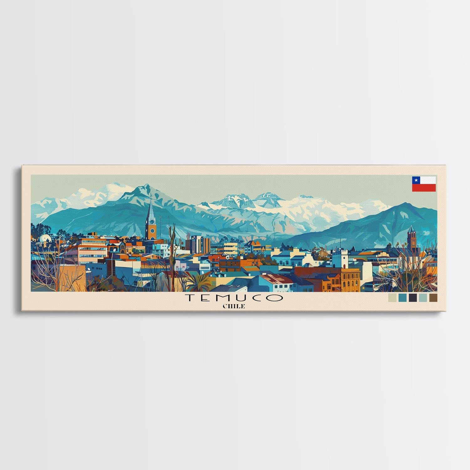 Temuco, Chile Panoramic Canvas Print, Temuco, Chile Painting, Chile Art, Temuco Travel Poster, Travel Art, Guest Room Painting