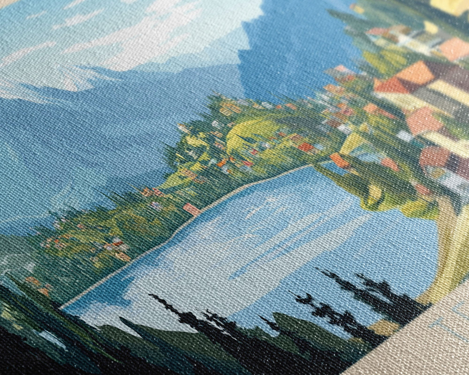 Most of our canvases are made in the USA, with the exception of canvases ordered with the light oak unstained frames, and any large canvases (24x48, 30x60, 16x48 and 20x60) ordered WITH a frame. These are temporarily made in and shipped from Europe, while we try to find a more consistent supplier in the USA.