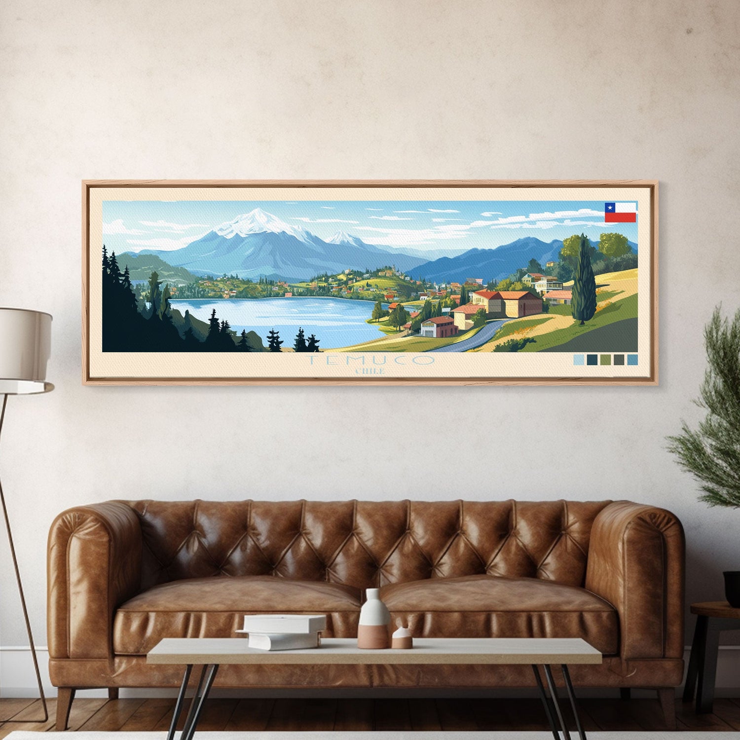 Temuco, Chile Panoramic Travel Poster Canvas Print, Temuco, Chile Painting, Chile Art, Temuco Travel Art, Living Room Painting