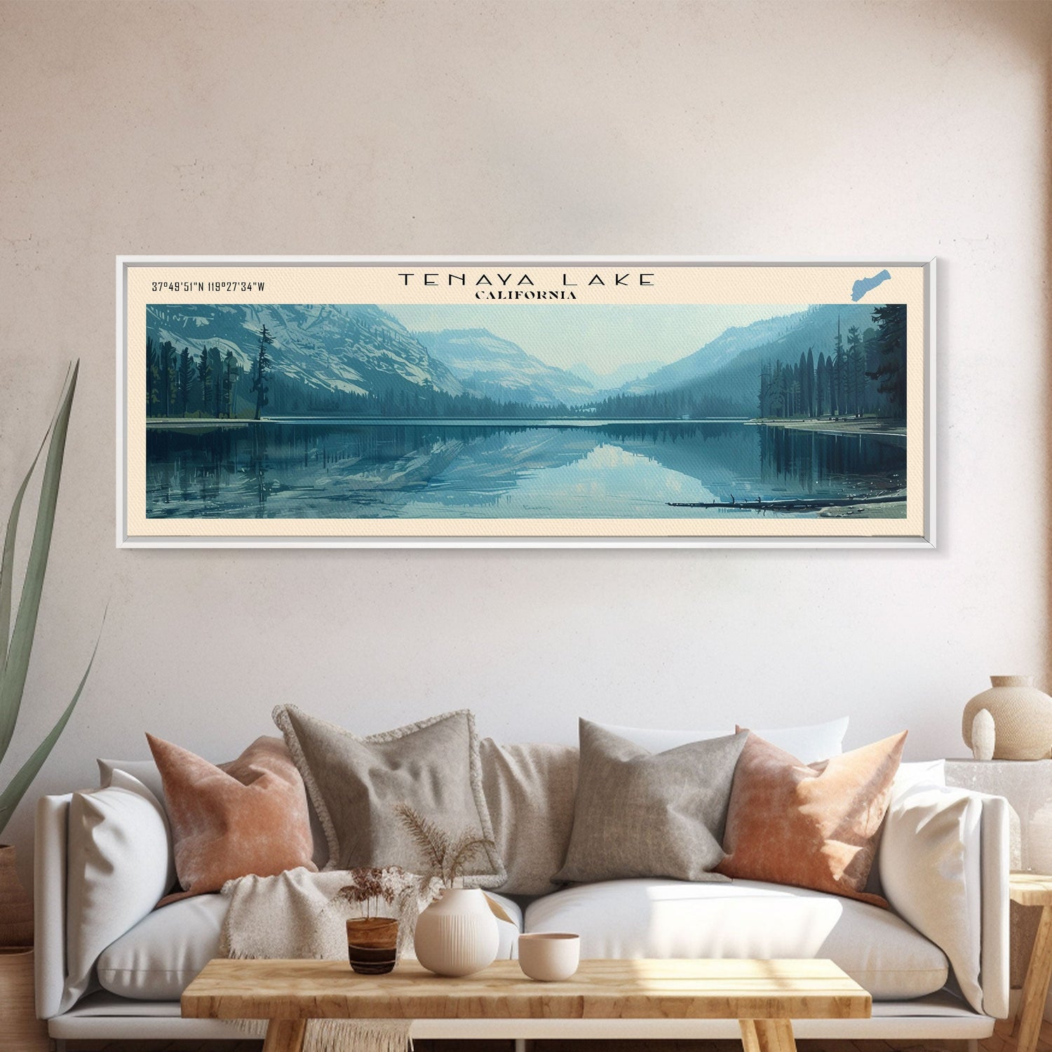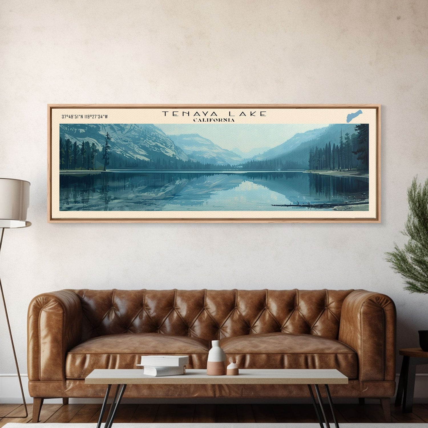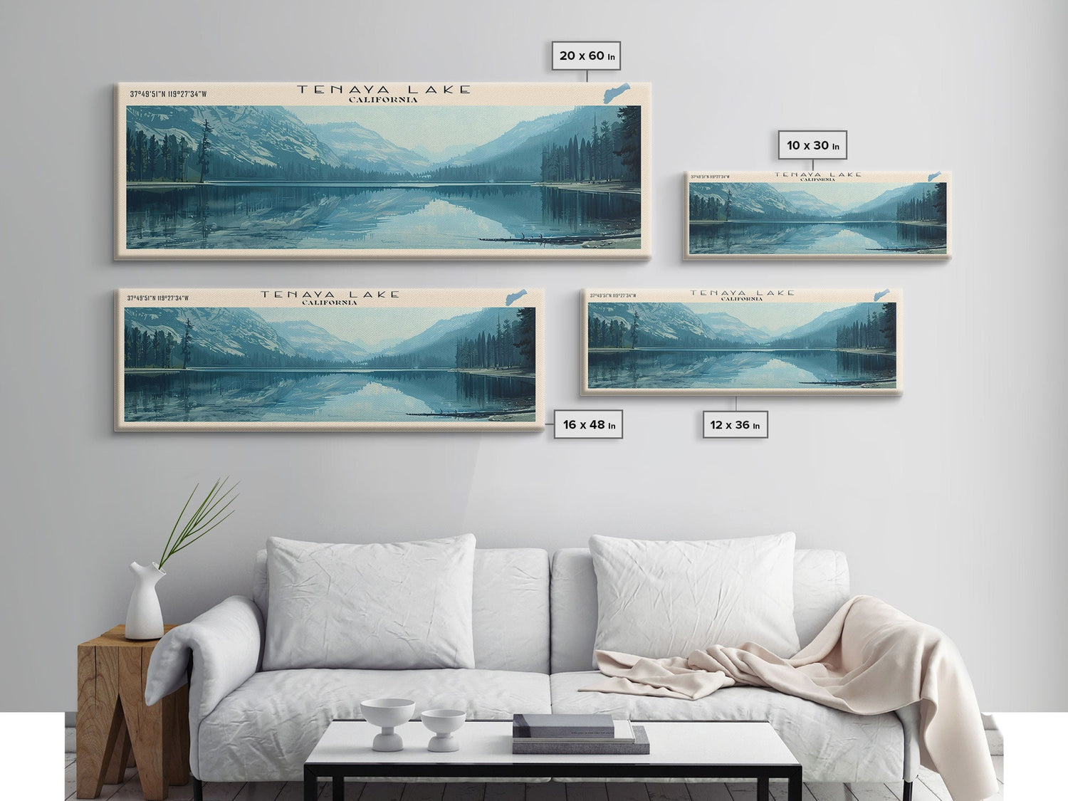 Tenaya Lake California Panoramic Wall Art, Framed Canvas Print, Lake House Decor, Travel Poster, Serene Landscape, Bedroom Decor, Home Decor