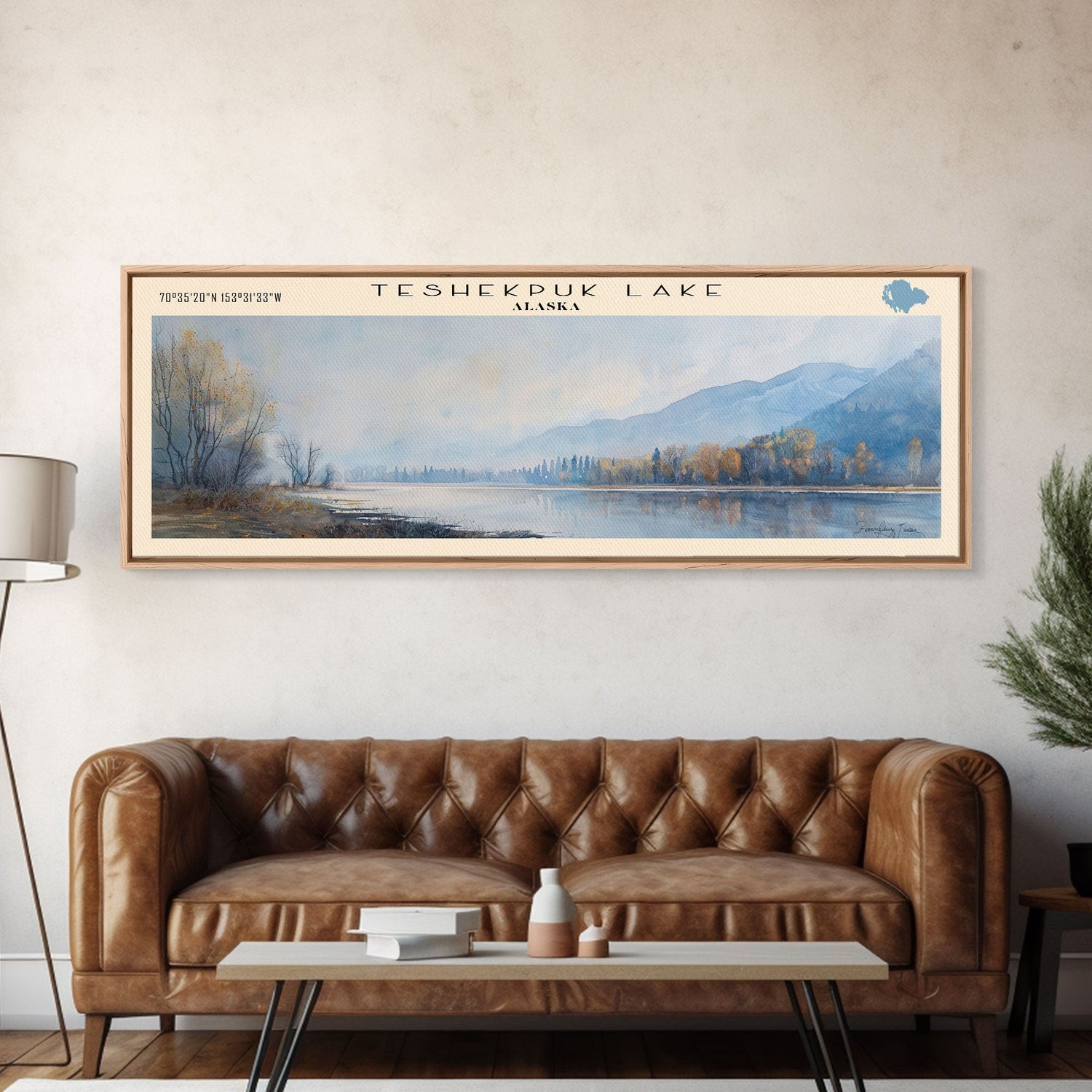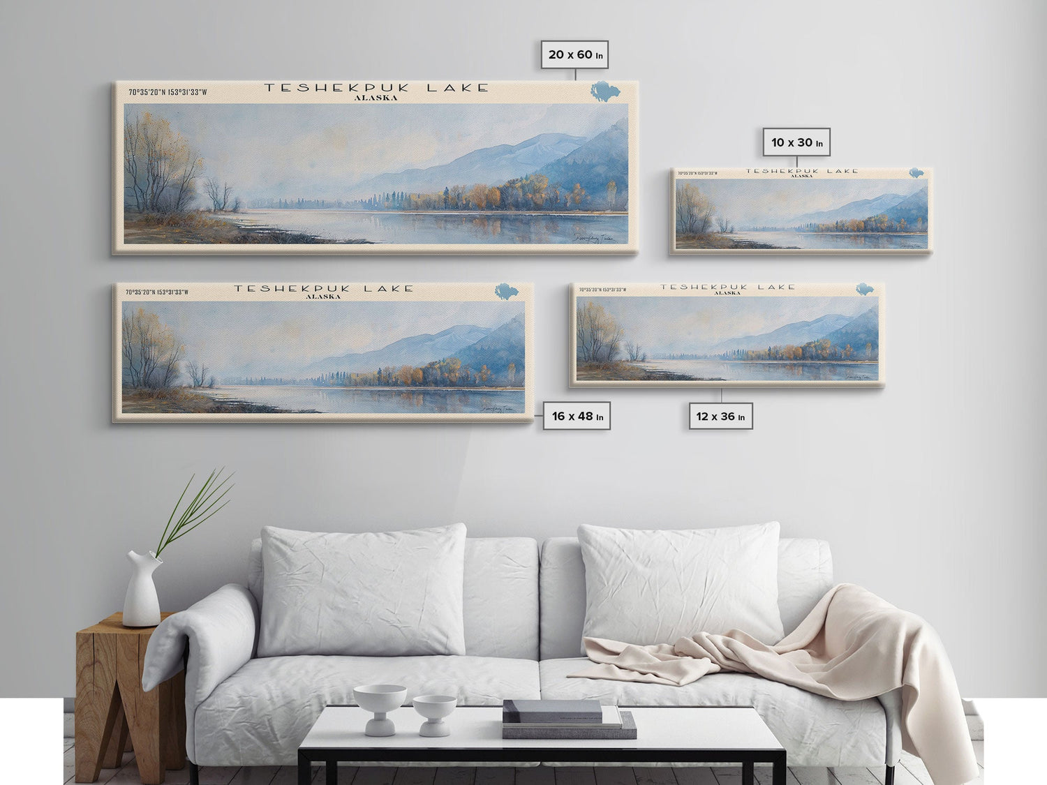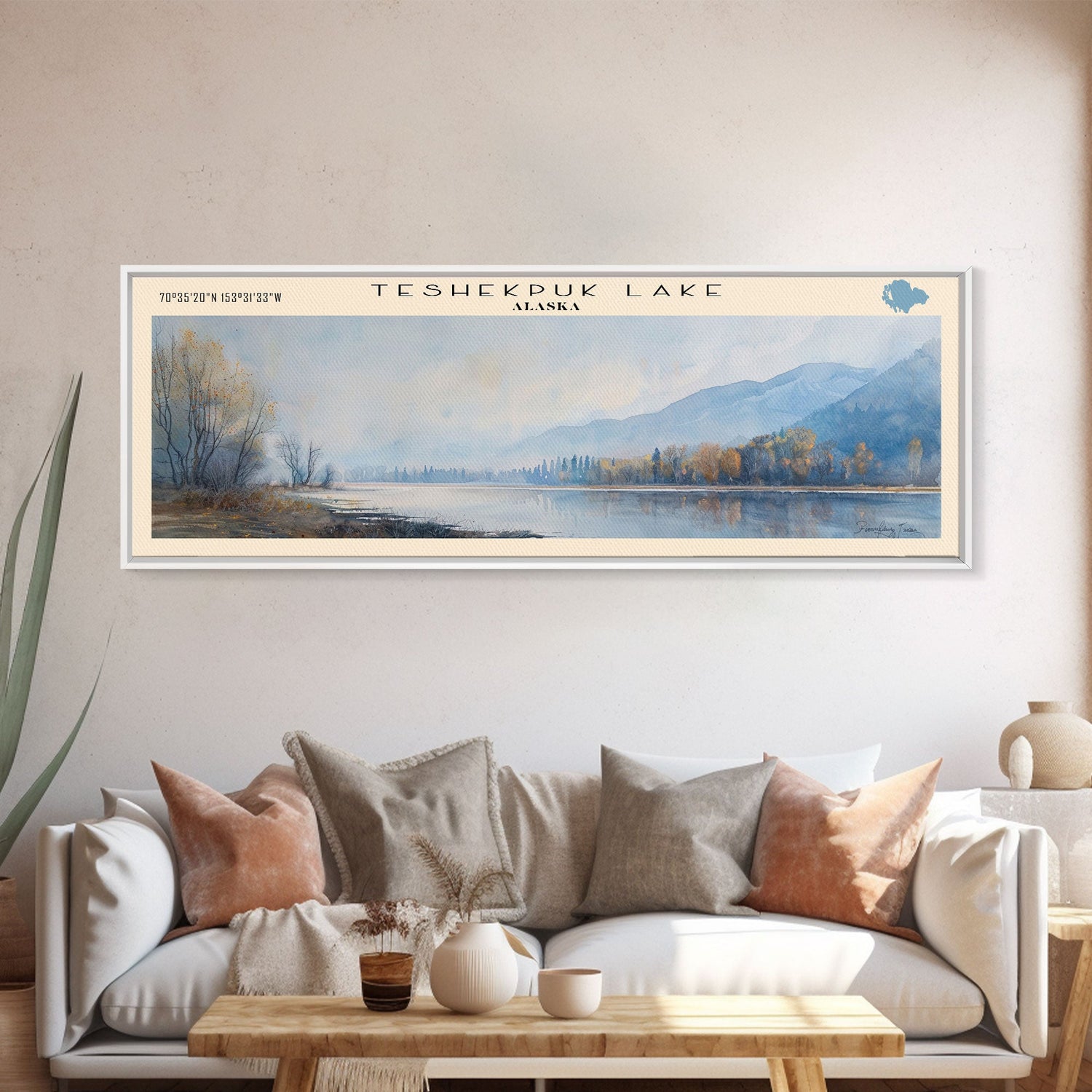 Teshekpuk Lake Panoramic Wall Art, Framed Canvas Print, Lake House Decor, Travel Poster, Scenic Lake Scene, Bedroom Decor, Home Art