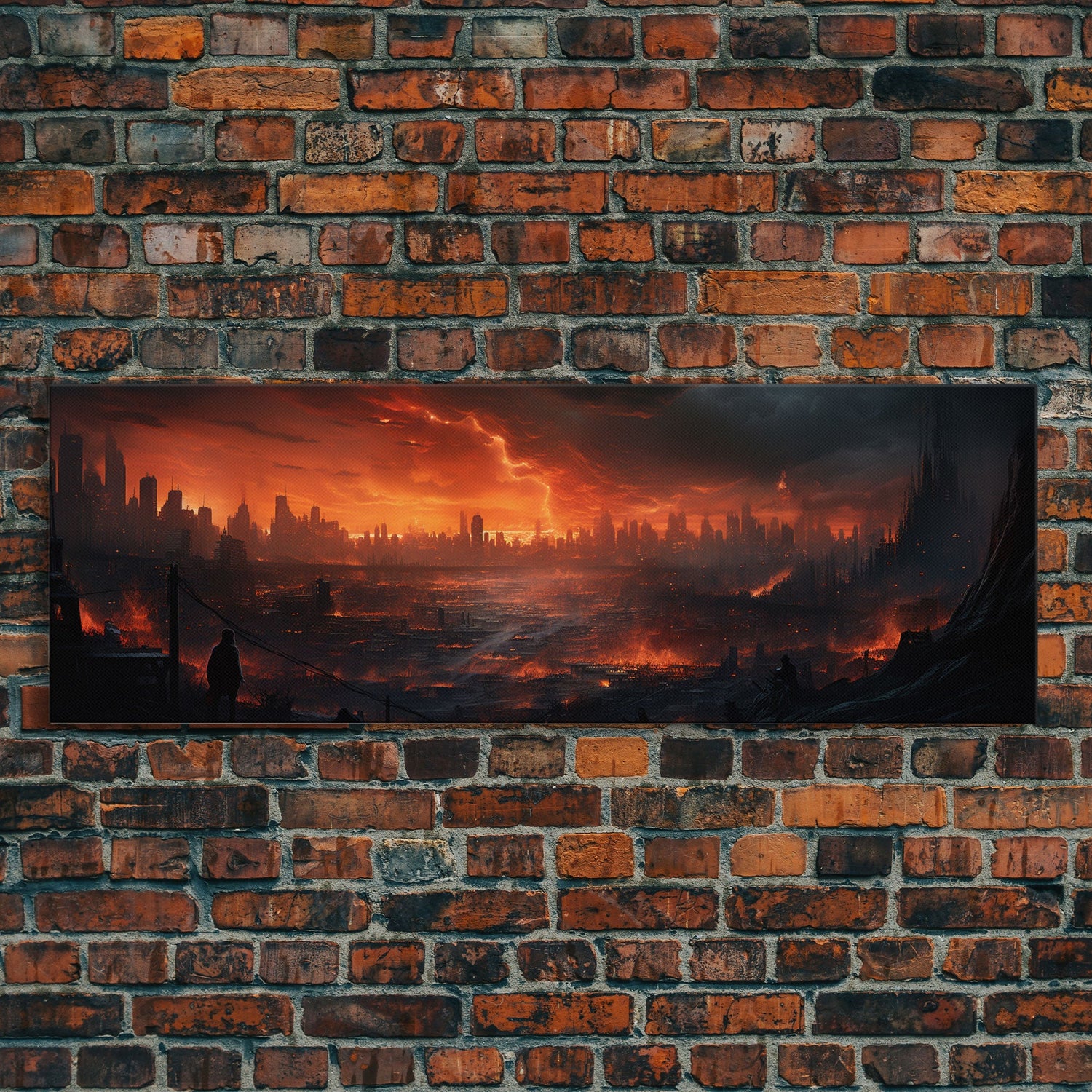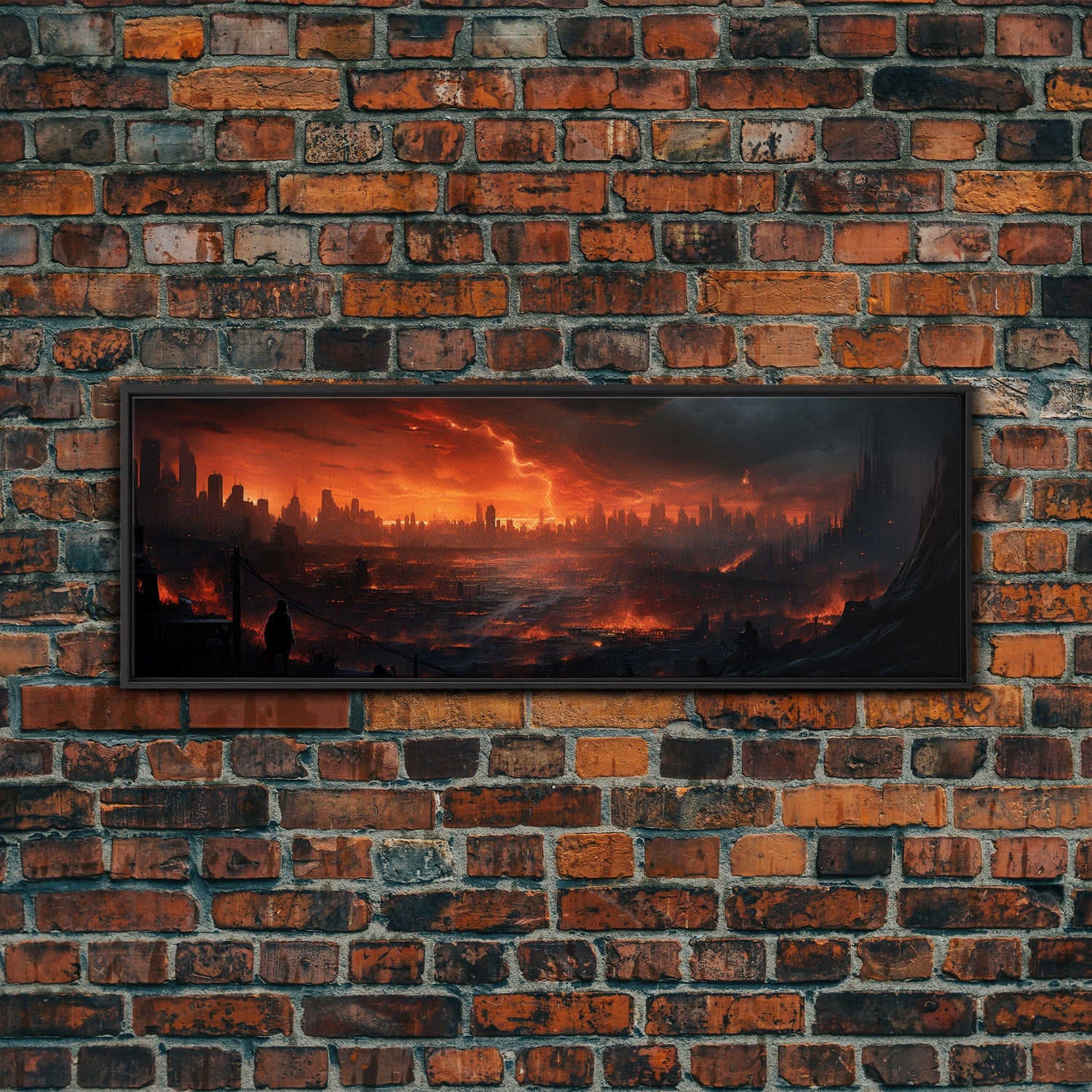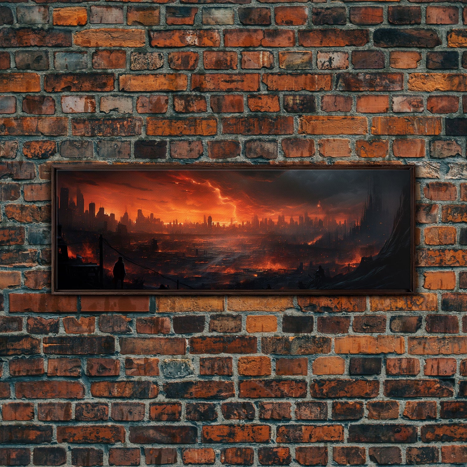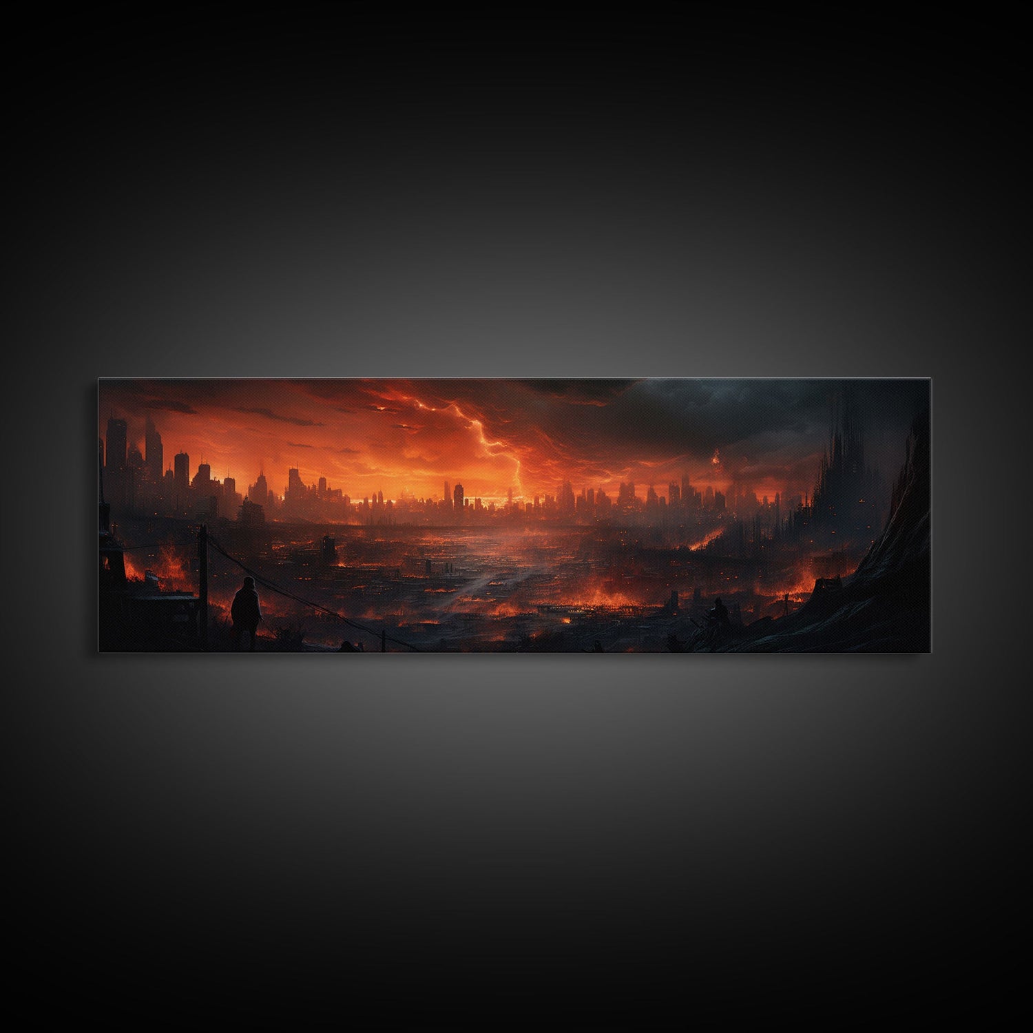 The Burning City Panoramic Canvas Print, Framed Halloween Art, Spooky Decor, Halloween Art, Halloween Wall Art, Halloween Art Print