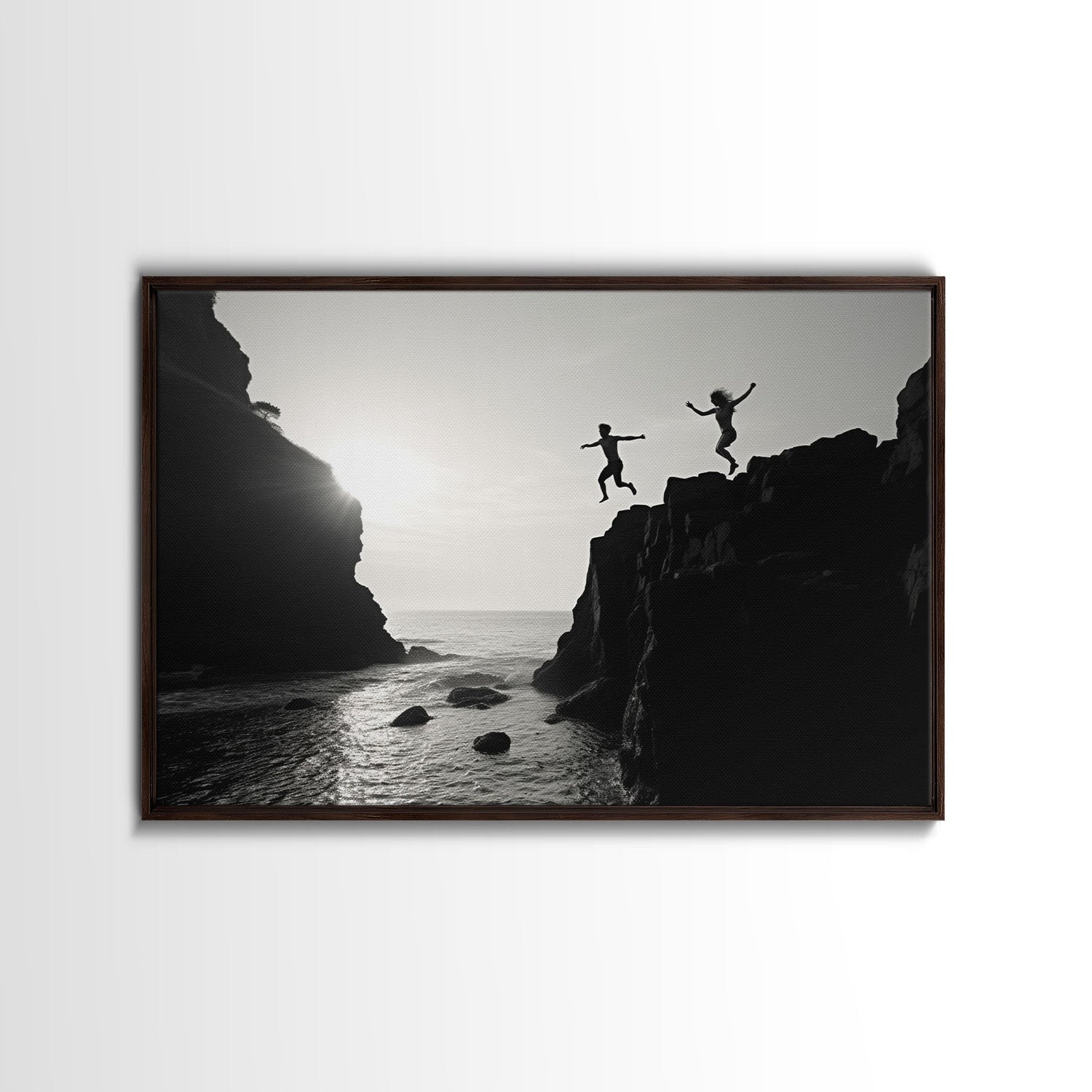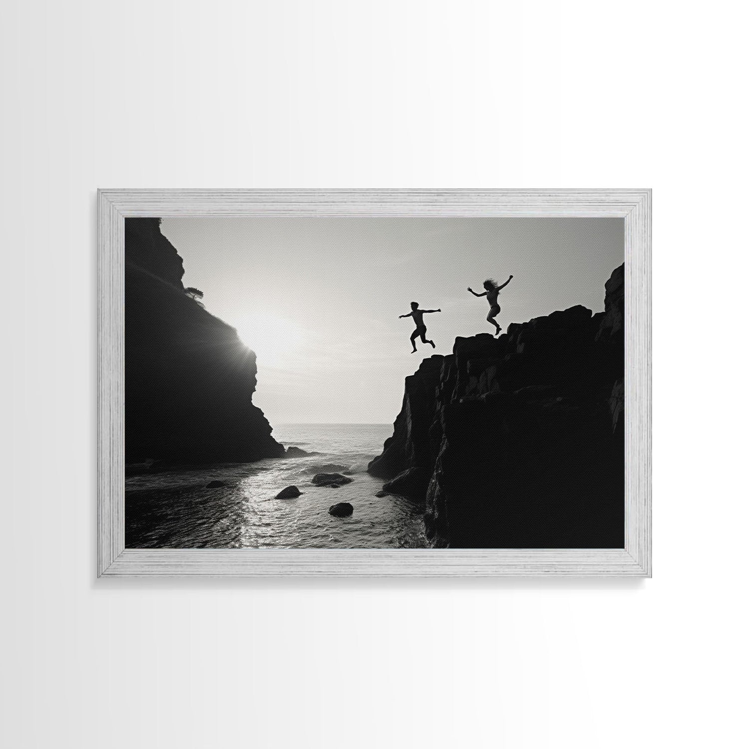 The Dive - Fine Art Black and White Print - Wood Framed Canvas or Metal Print - Cliff Diving In The Ocean - Lifestyle Minimalist Home Decor