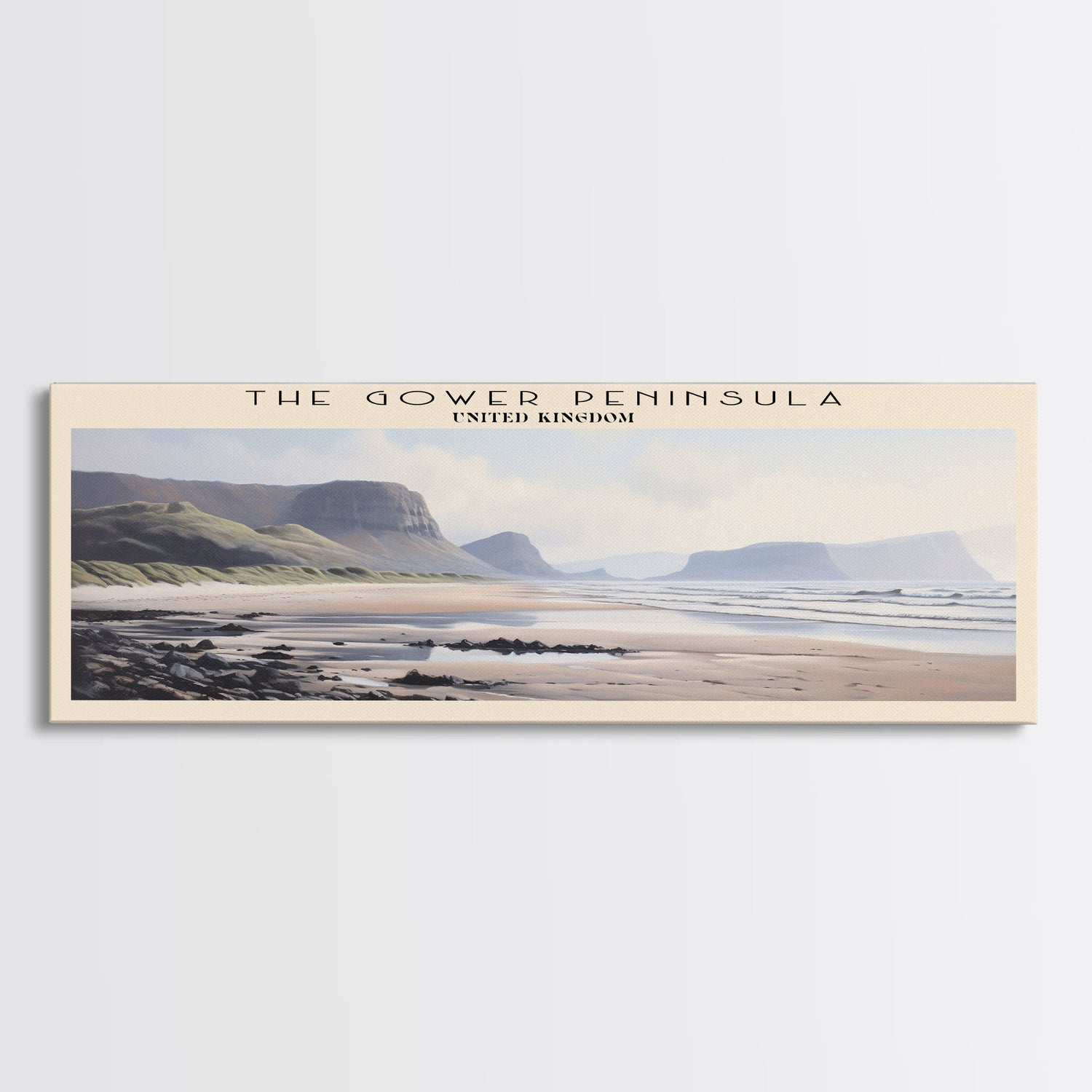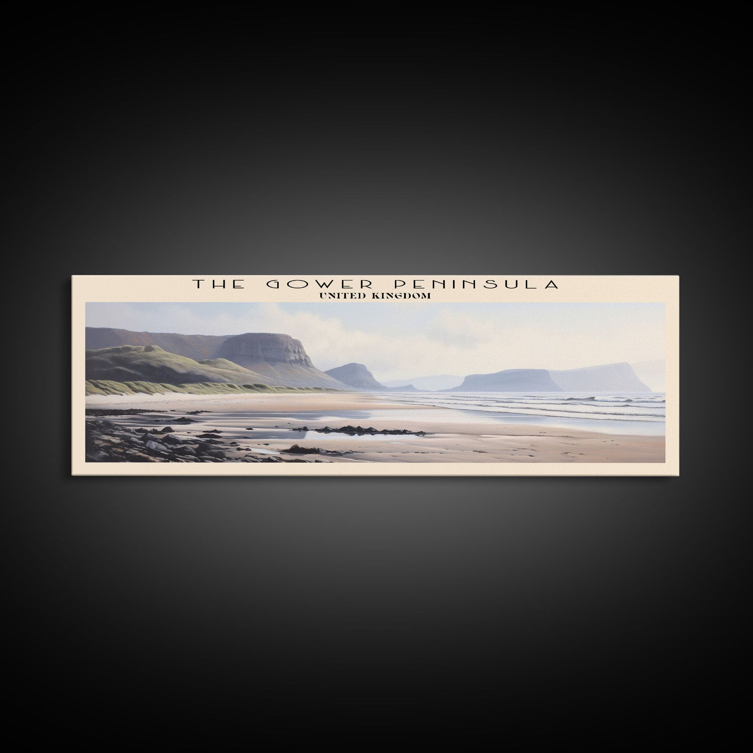 The Gower Peninsula Framed Canvas Print Travel Poster | Wall Art | Home Decor | Gift For Travel Lover | Wall Hanging | Original Art - 10x30 Inches / No Frame - Stretched Canvas Only está agotado y se enviará tan pronto como vuelva a estar disponible.