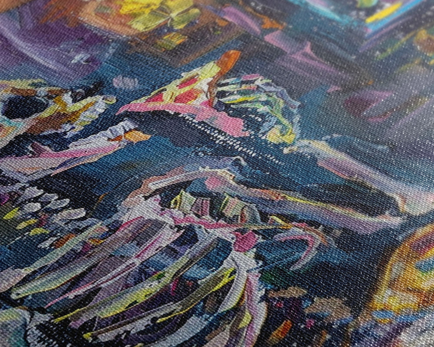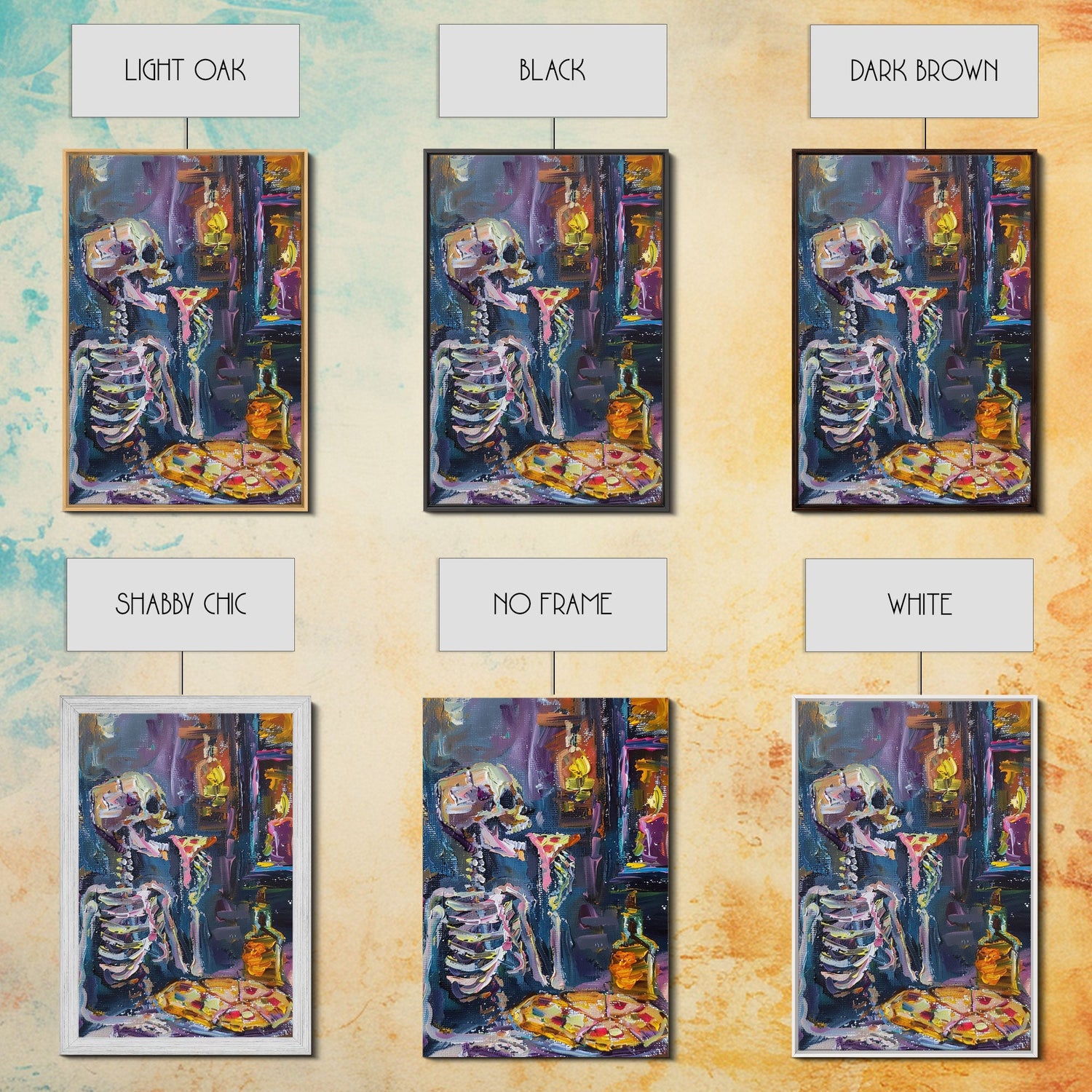 The Hungry Skeleton Chomps a Pizza, Funny Halloween Art, Framed Canvas, Halloween Poster - 8x12 Inches / No Frame - Stretched Canvas Only está agotado y se enviará tan pronto como vuelva a estar disponible.