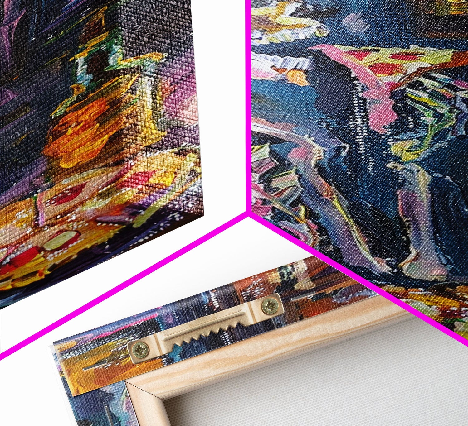 Hello and thank you for taking the time to view our modern high quality giclée artwork! We offer both posters and stretched canvas prints. Our posters are printed on Ultra Matte 60 lb / 230 GSM high quality photo paper, with a thickness of 10 mil. Our canvases are printed on museum grade 350 GSM canvas material with ECO friendly archival grade ink, then hand stretched and stapled over premium, FSC certified and shrink resistant frames. Designed and built to last a lifetime.