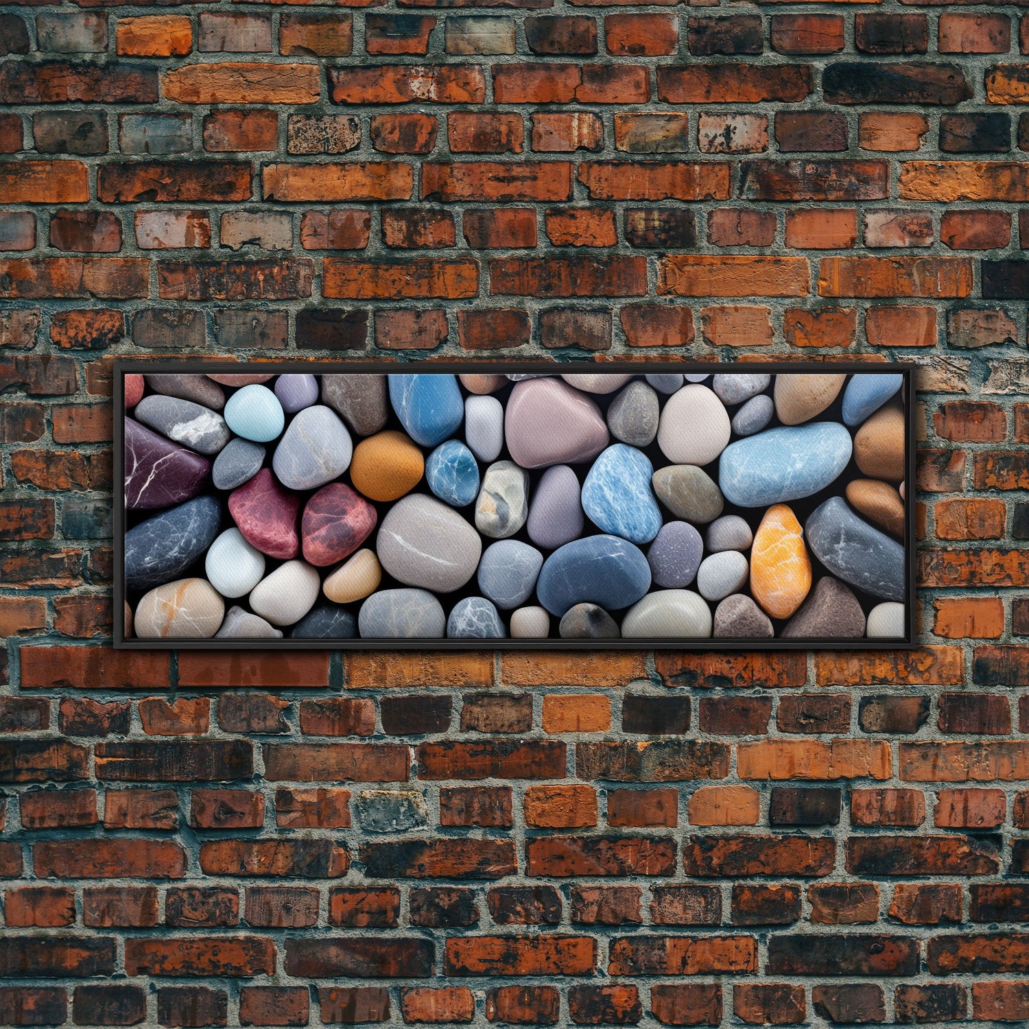 The Lake Bed, Photography Print Wall Art, Framed Canvas Print, Panoramic Extra Large Wall Decor, Stones and Rocks Photography