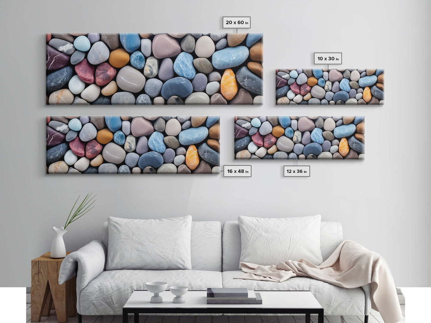 The Lake Bed, Photography Print Wall Art, Framed Canvas Print, Panoramic Extra Large Wall Decor, Stones and Rocks Photography - 10x30 Inches / No Frame - Stretched Canvas Only está agotado y se enviará tan pronto como vuelva a estar disponible.