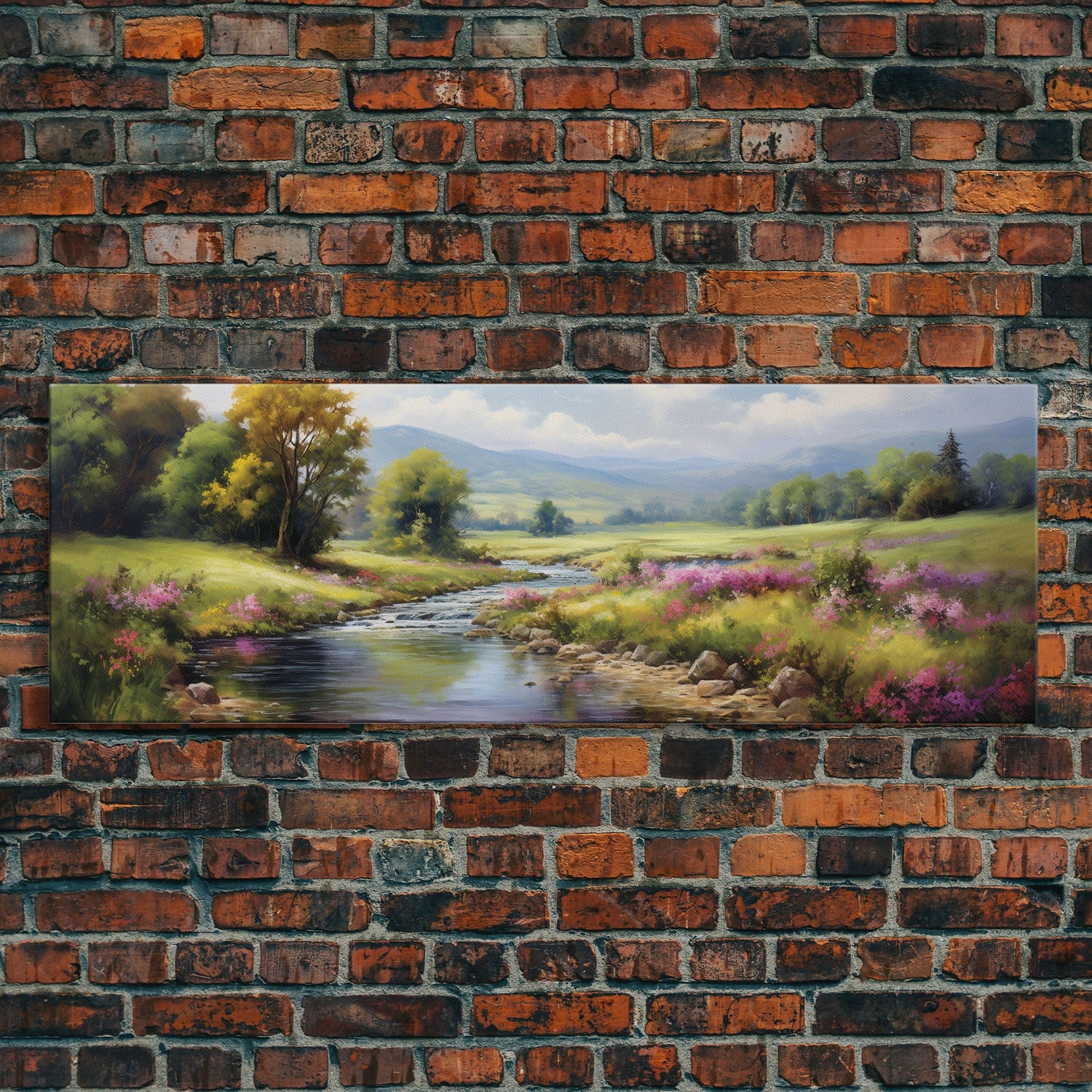 The Meadow, Framed Canvas Print, Framed Wall Art, Large Watercolor Painting, Panoramic Landscape Art Print, Modern Landscape Original Art