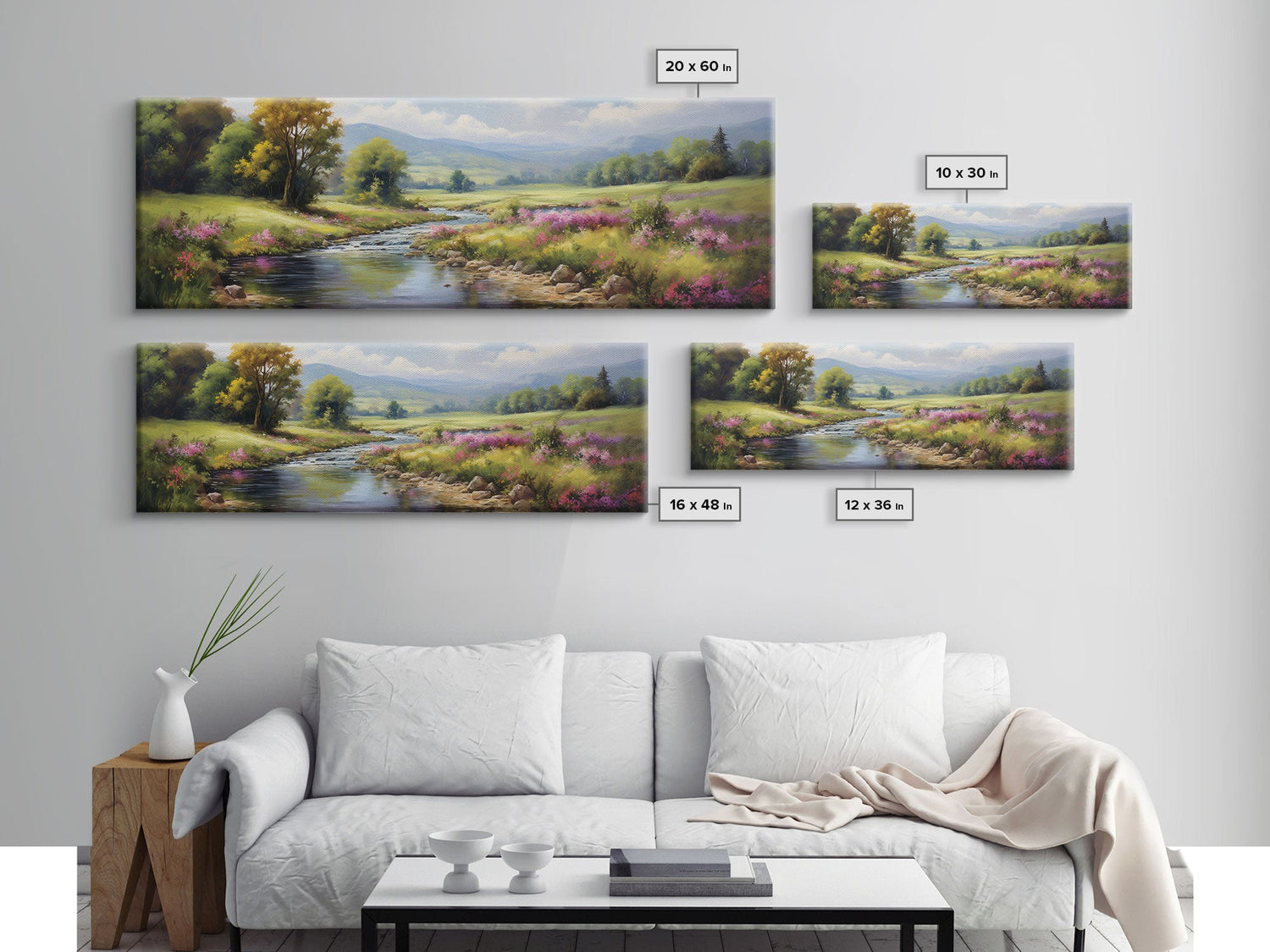 The Meadow, Framed Canvas Print, Framed Wall Art, Large Watercolor Painting, Panoramic Landscape Art Print, Modern Landscape Original Art - 10x30 Inches / No Frame - Stretched Canvas Only está agotado y se enviará tan pronto como vuelva a estar disponible.