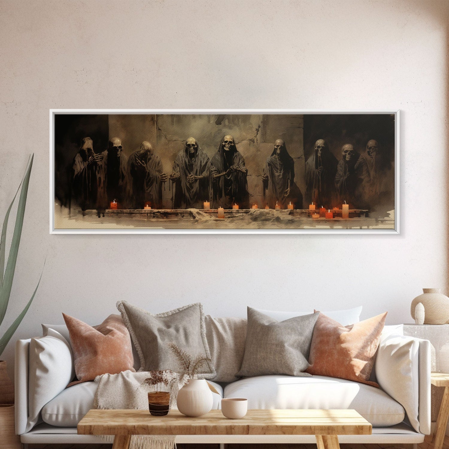 The Skeleton Cult Panoramic Canvas Print, Framed Halloween Art, Spooky Decor, Halloween Art, Halloween Wall Art, Halloween Art Print