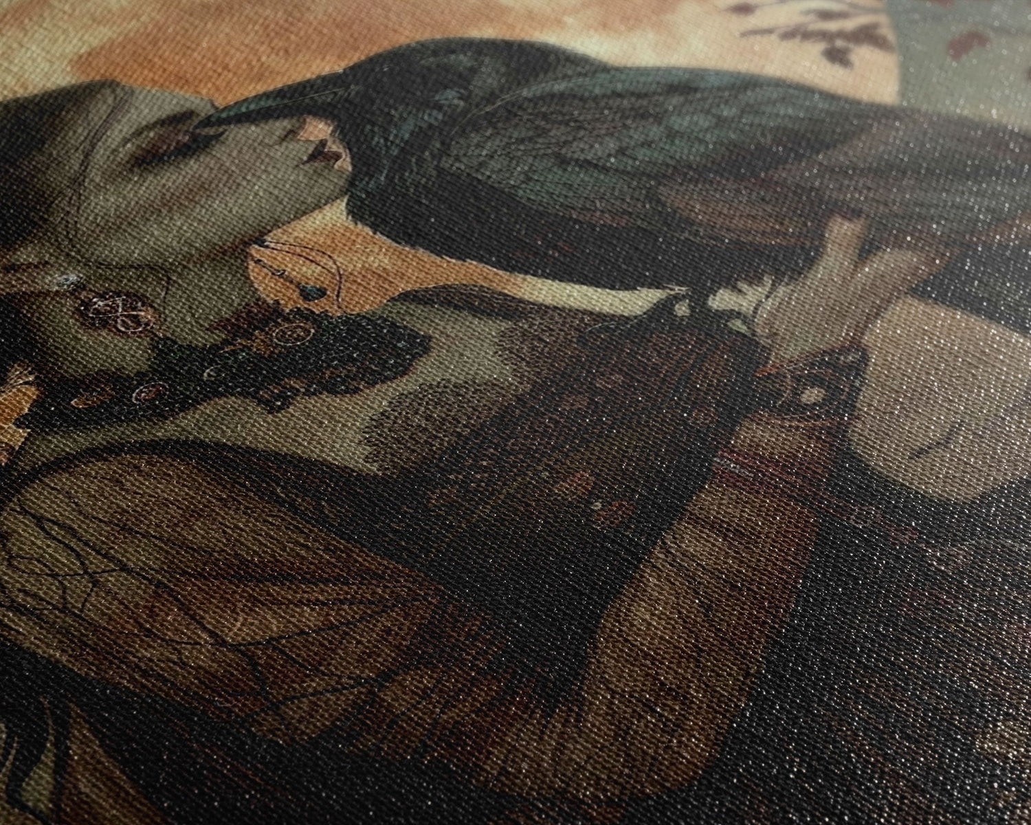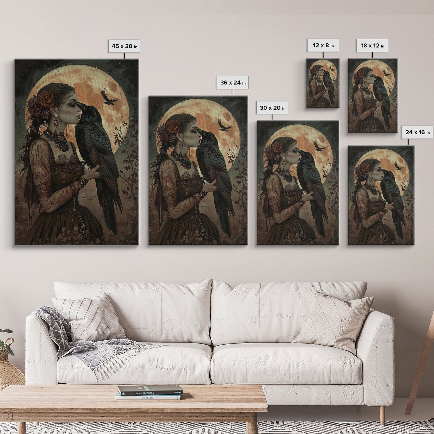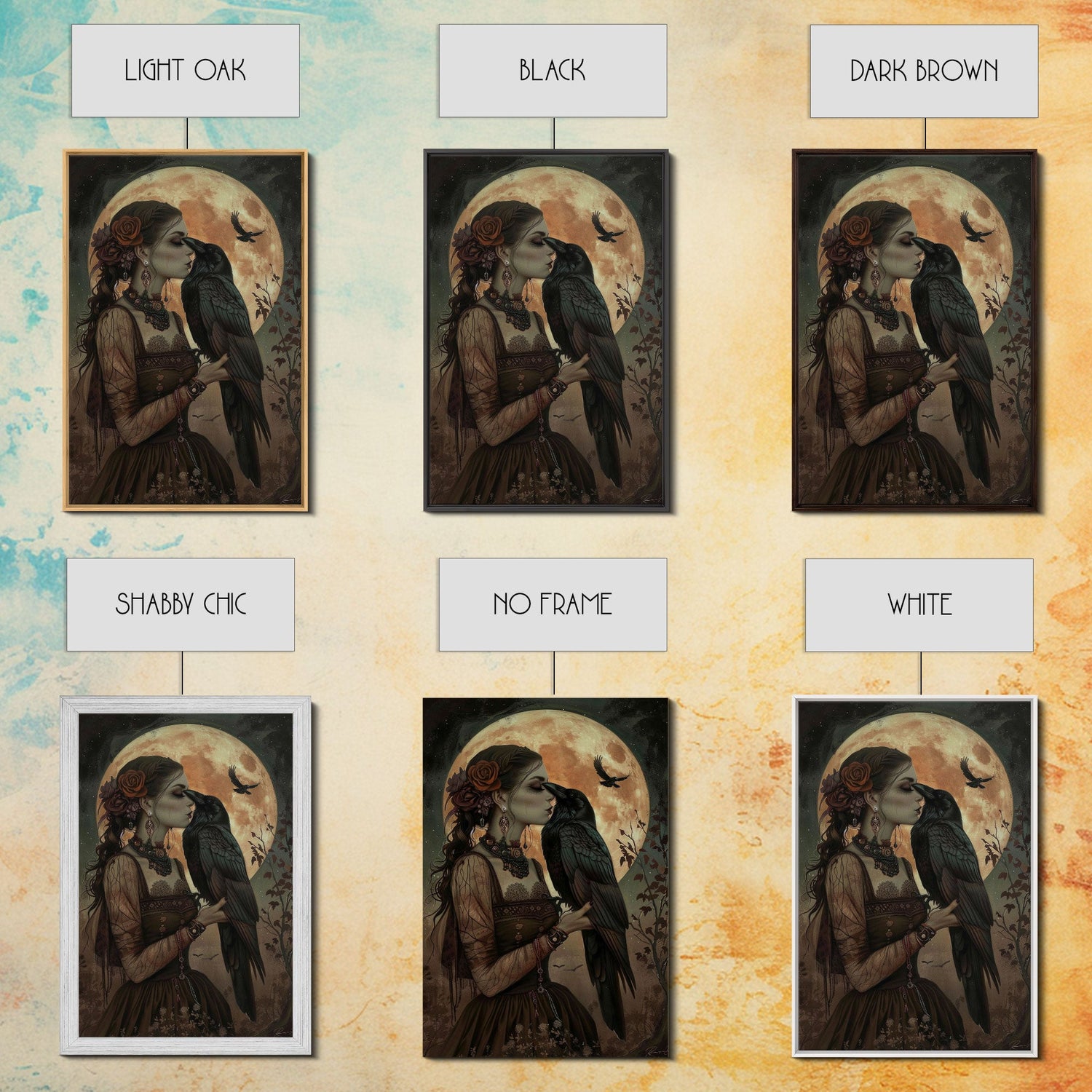 The Witch And The Raven, Framed Canvas Print, Raven Familiar, Victorian Witch Painting, Halloween Decor, Halloween Trinket, Spooky Wall Art
