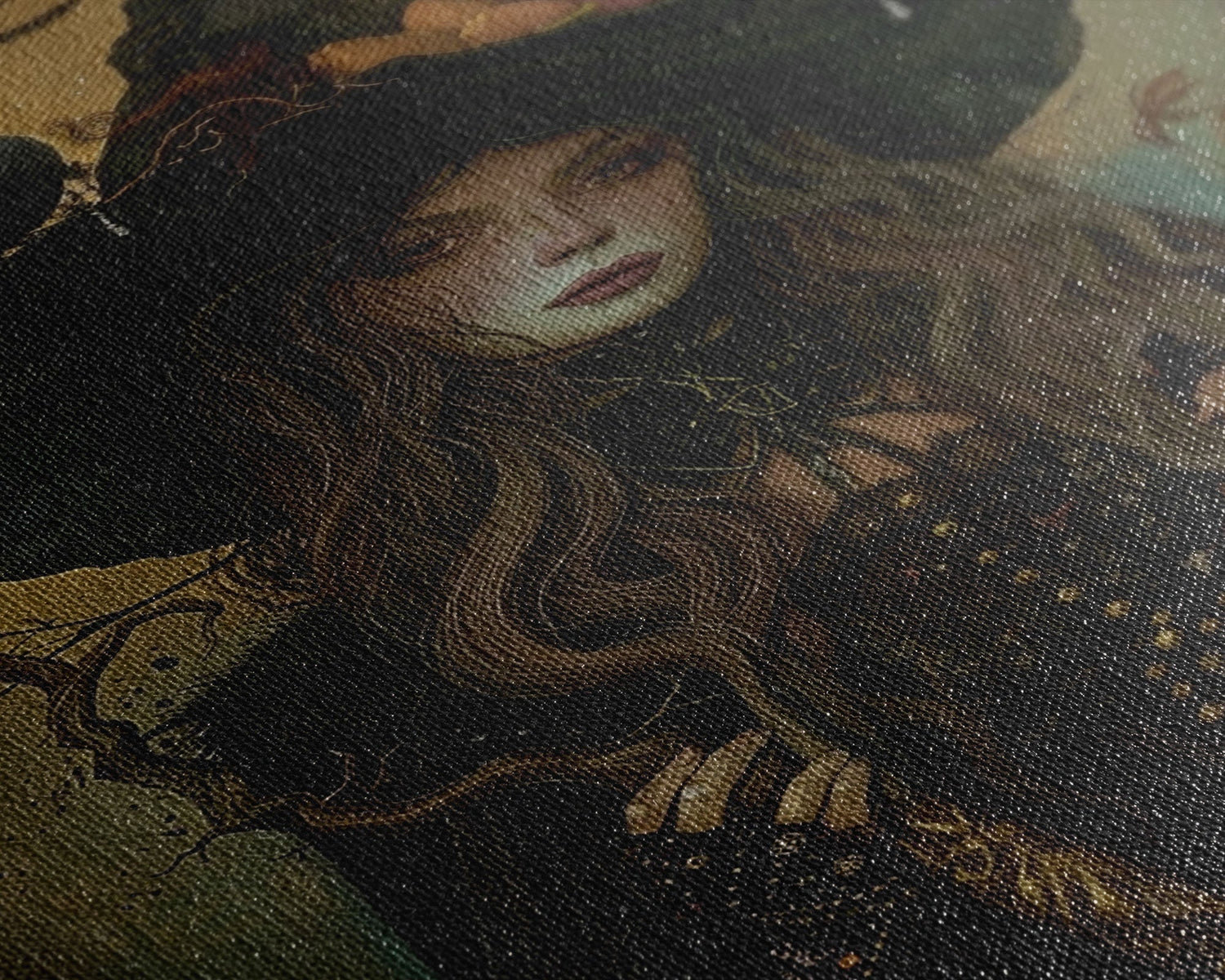 The Witch And The Raven, Framed Canvas Print, Raven Familiar, Victorian Witch Painting, Halloween Decor, Halloween Trinket, Spooky Wall Art - 8x12 Inches / No Frame - Stretched Canvas Only está agotado y se enviará tan pronto como vuelva a estar disponible.