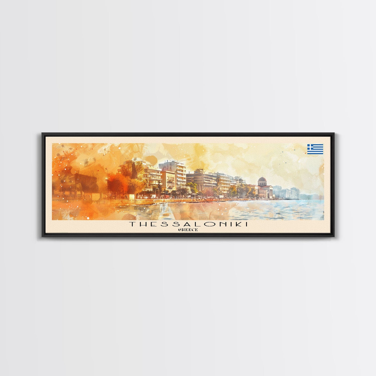 Thessaloniki Greece Travel Art, City Art, Framed Canvas Print or Metal Wall Art, Europe Travel Poster, Panoramic Wall Art, Extra Wide Wall Art